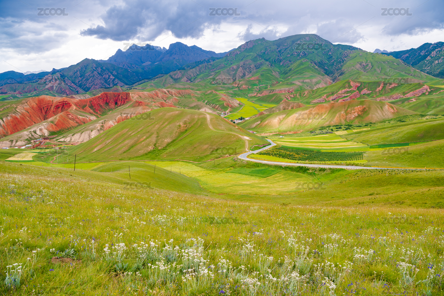 青海,祁连县,祁连山脉,祁连,卓尔山,草原,高原,山区,红色,丹霞