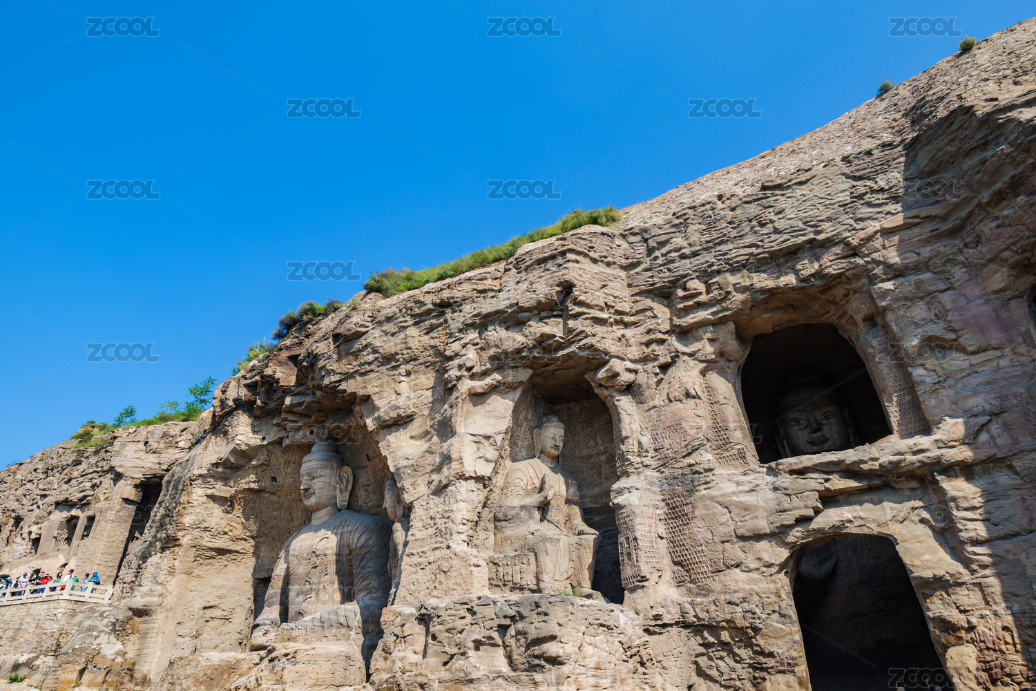 河南,洛阳,龙门石窟,晴天,早上,洞窟,佛像,佛教,雕塑,古迹