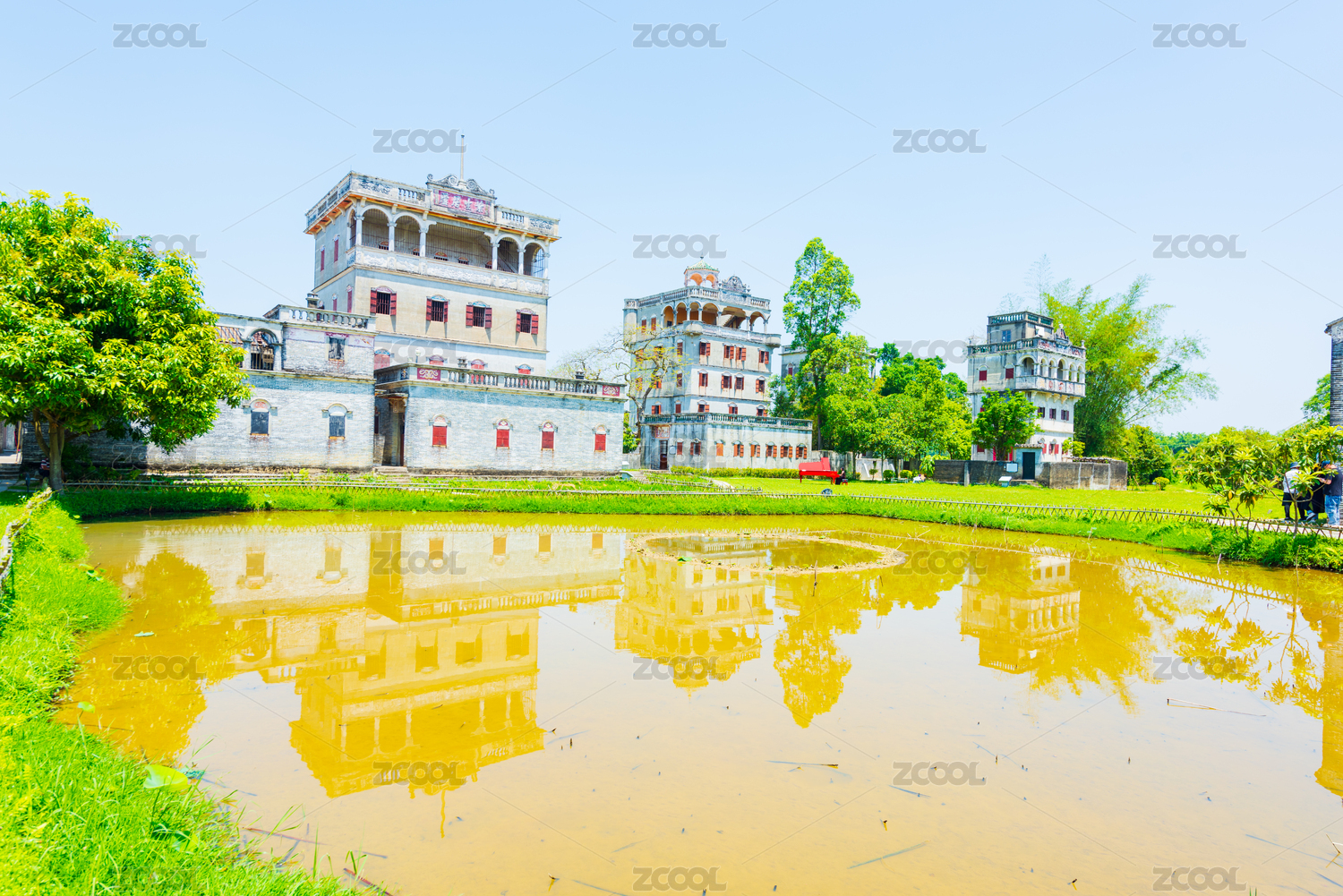 中国广东省江门市开平自力村碉楼景区的荷塘