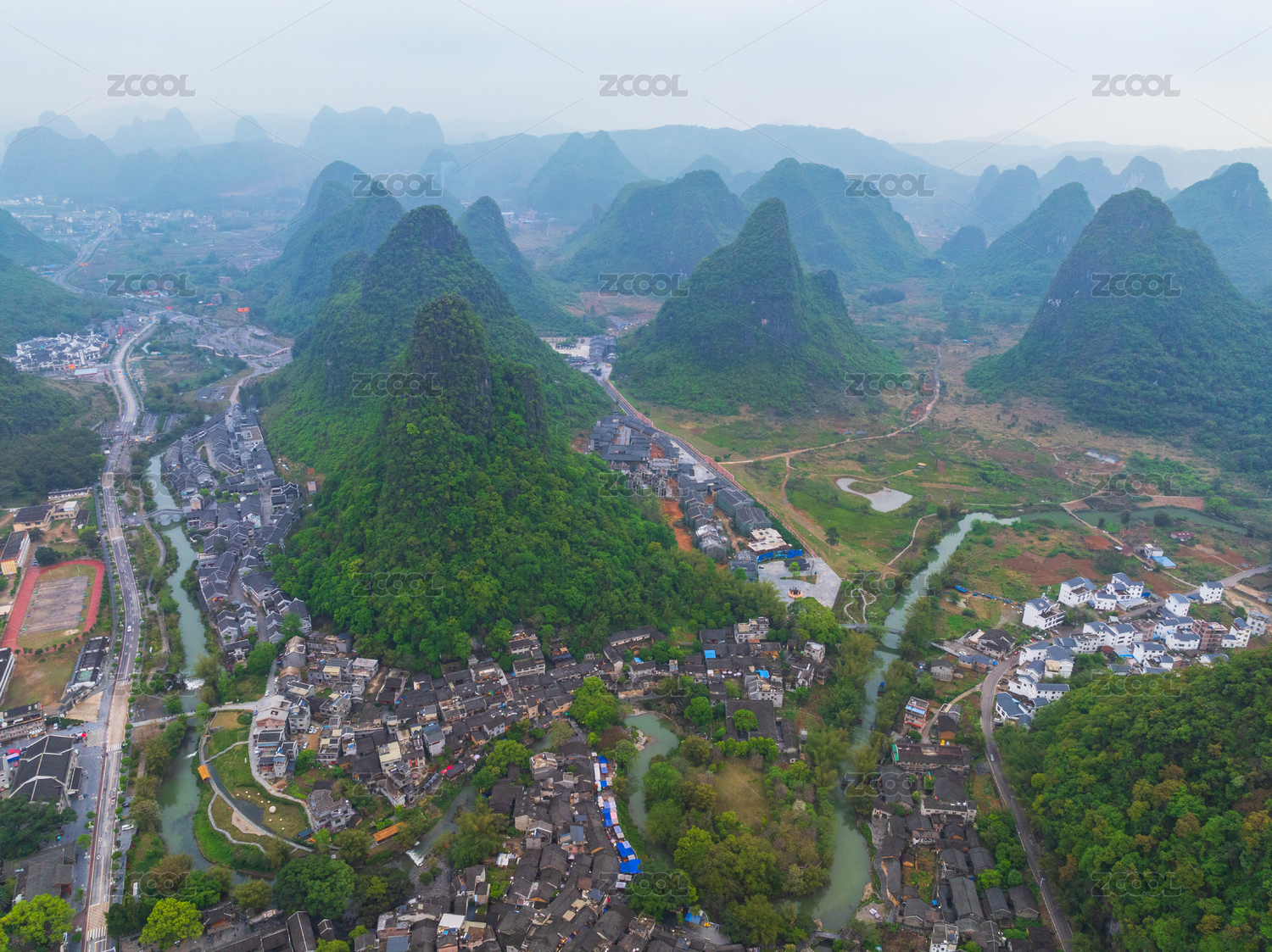 广西,贺州,黄姚古镇,山,喀斯特,古镇,村庄,村落,古民居,阴天