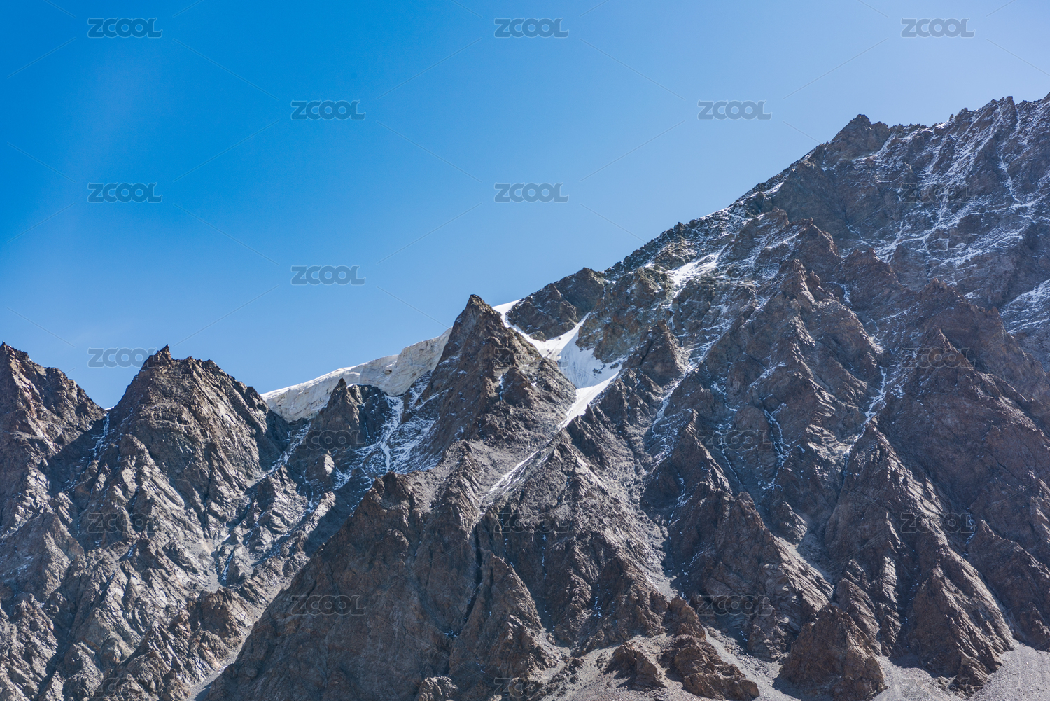 纯净蓝天下云南丽江玉龙雪山局部特写