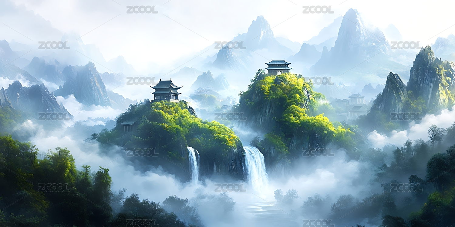 虚拟,古代,神话,场景,空旷,背景,幻想,神秘,传说,艺术