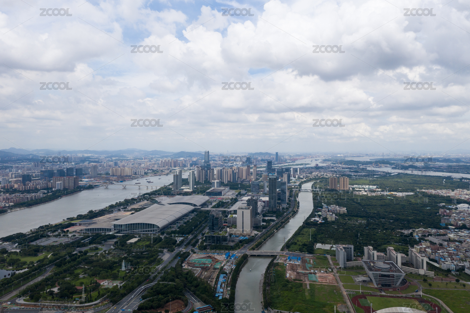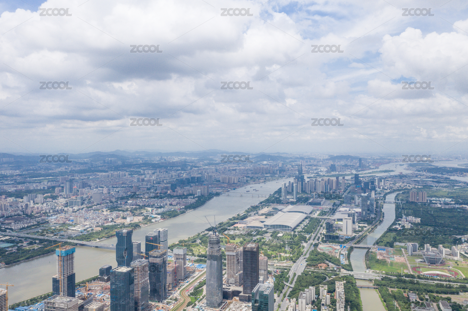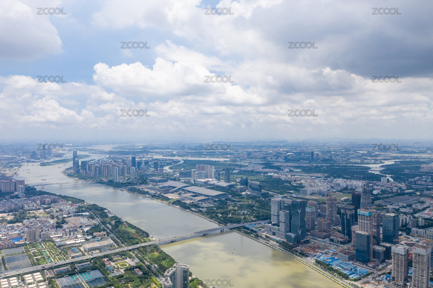 中国广东省广州市珠江两岸城市风光航拍