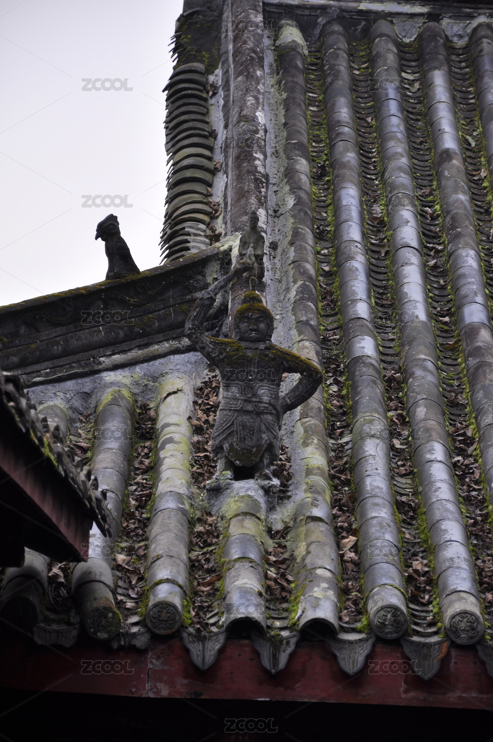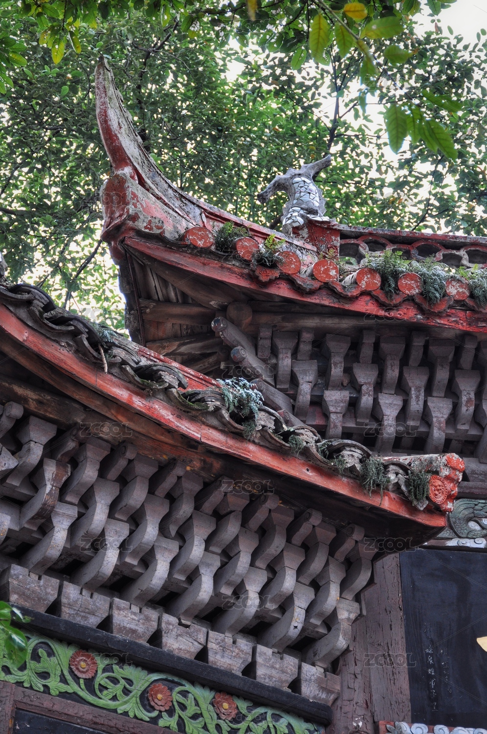 成都杜甫草堂花径红墙黑瓦神兽雕刻