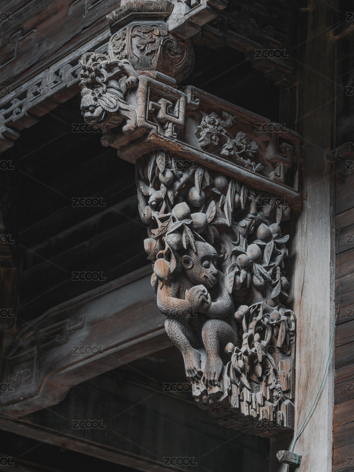 中国浙江丽水松阳县黄家大院传统木雕艺术猴子