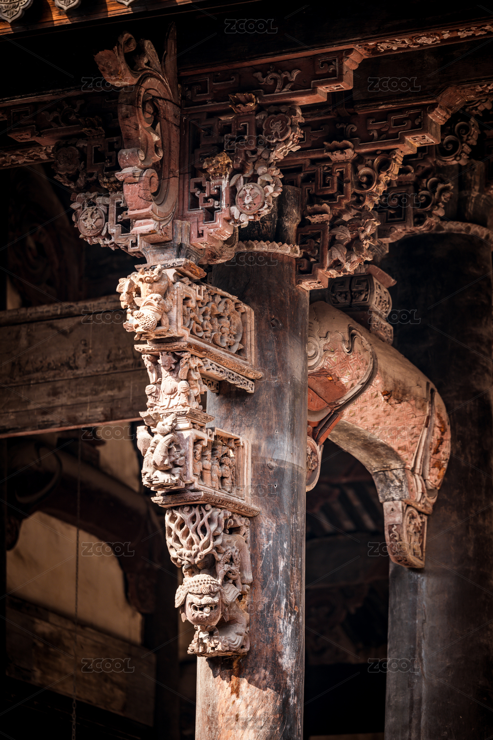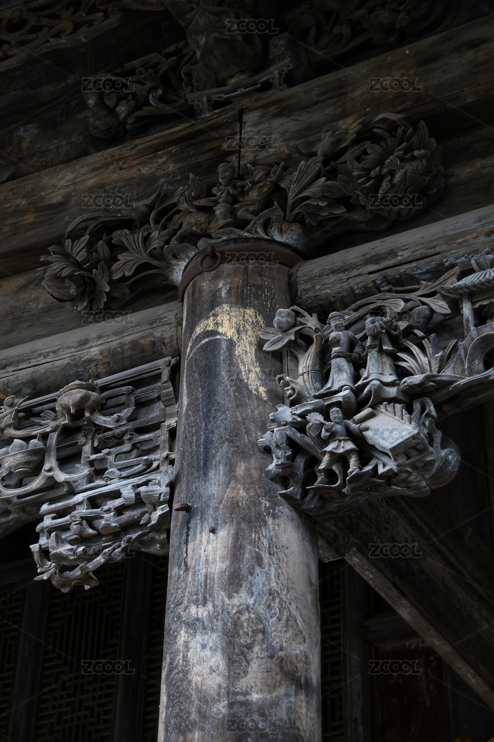 浙江东阳卢宅建筑细节,牛腿雀替粱架马头墙