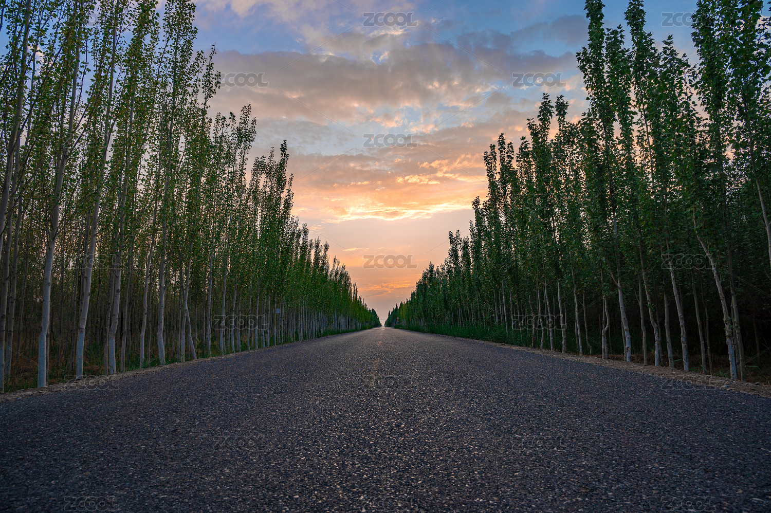 无人,户外,树,自然,公路,笔直,杨树,防护林,防风,固沙