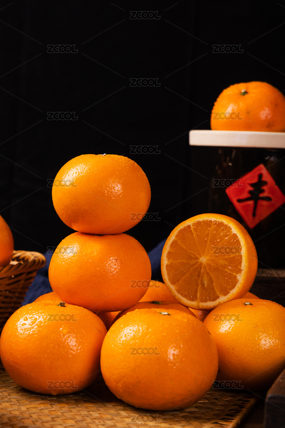 深色背景,富含维生素C的新鲜沃柑
