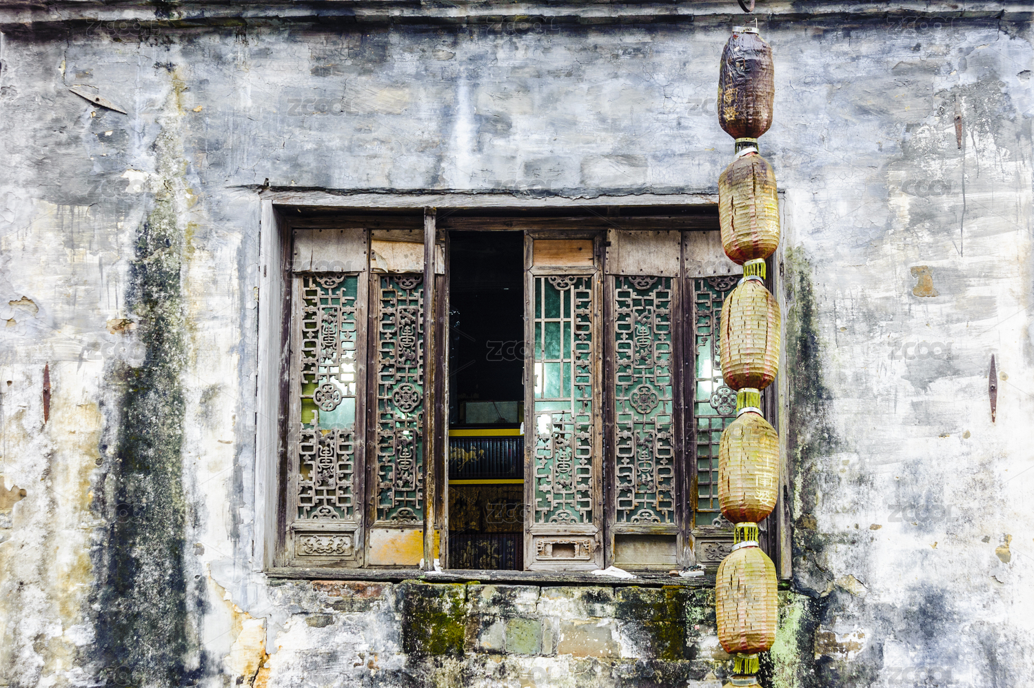 江南民居白墙砖雕木窗,中国江苏省南京市老门东历史文化街区