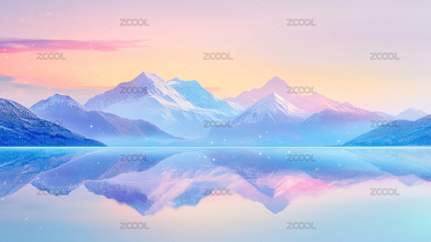 粉色雪山在湖面上的倒影