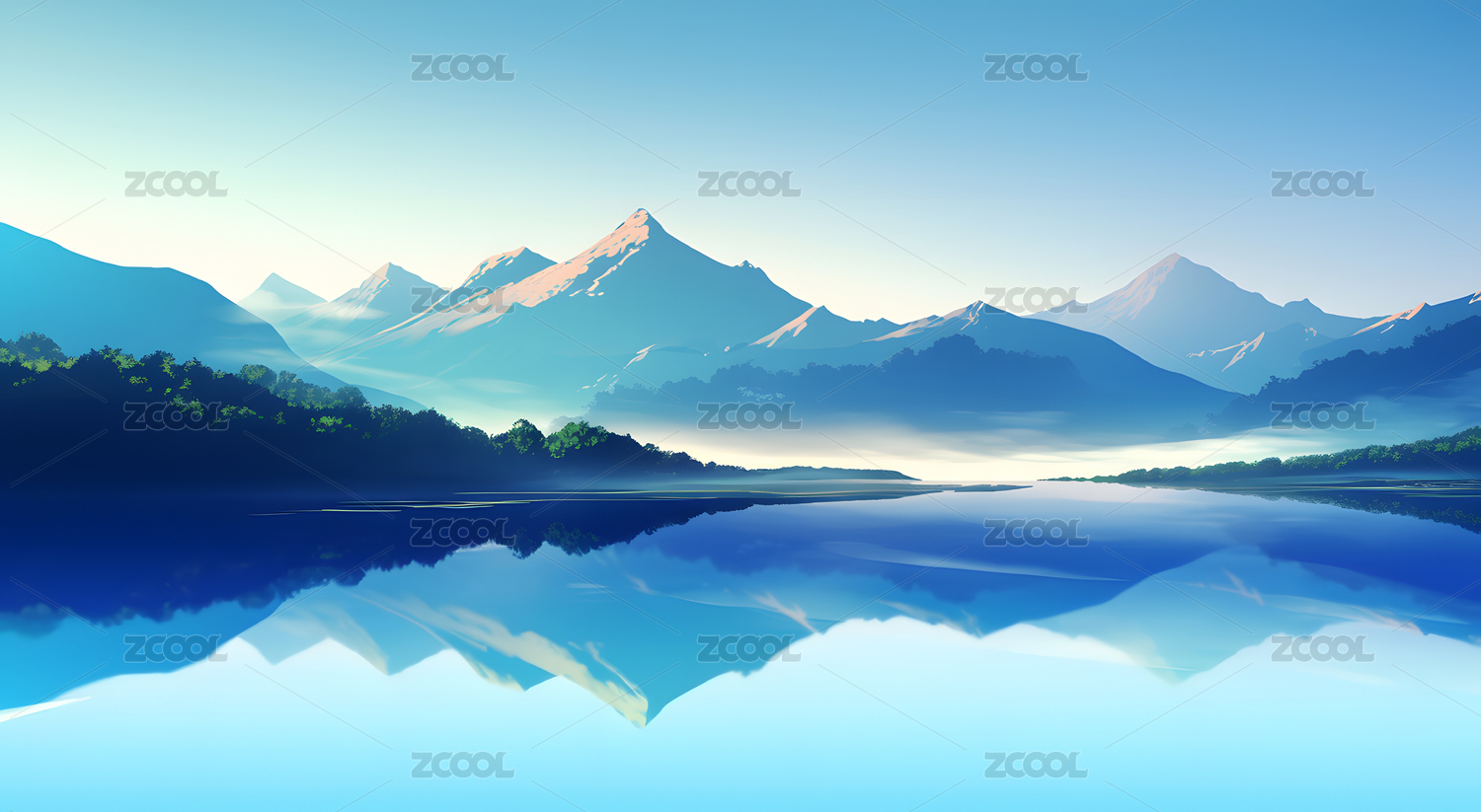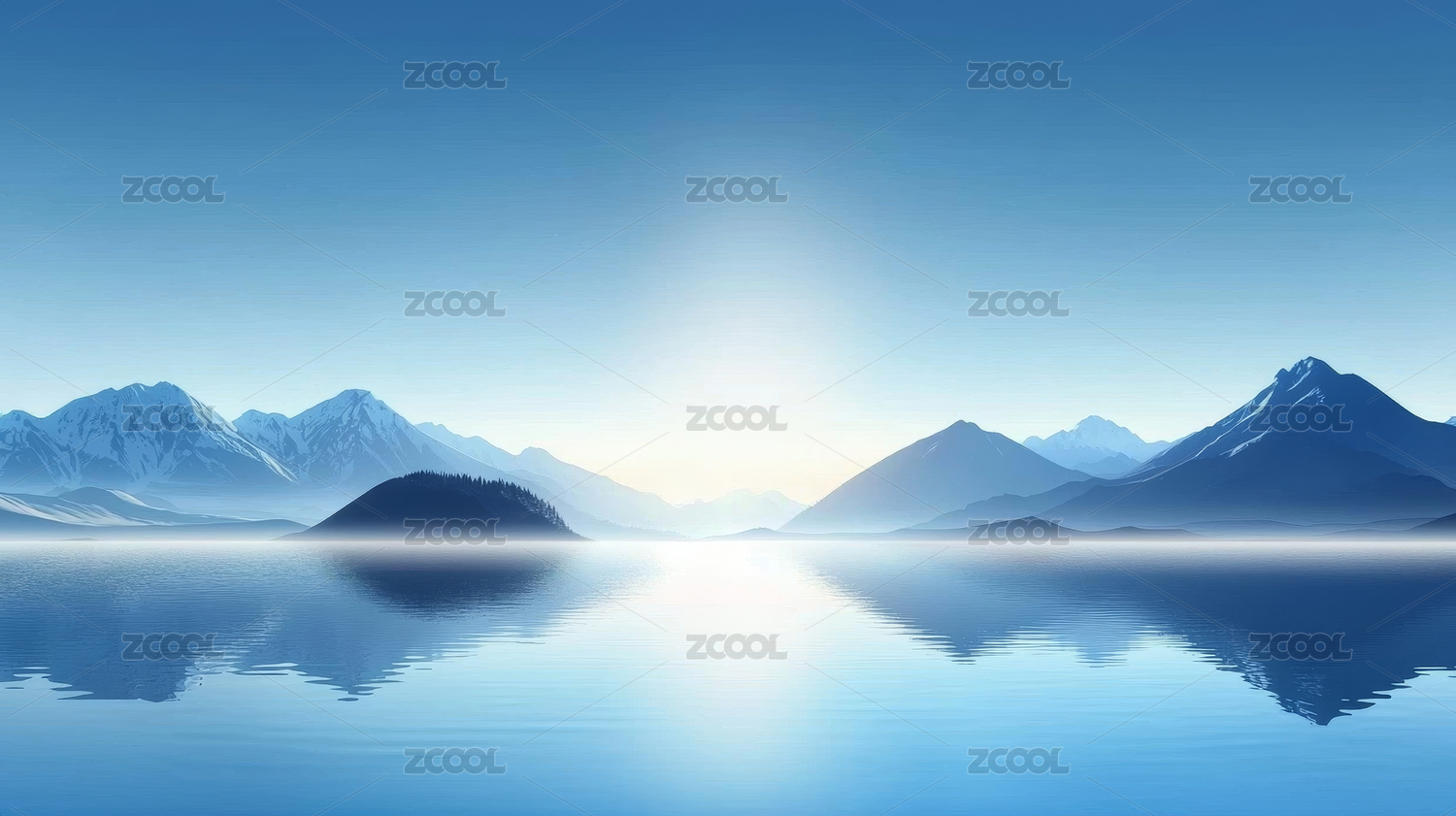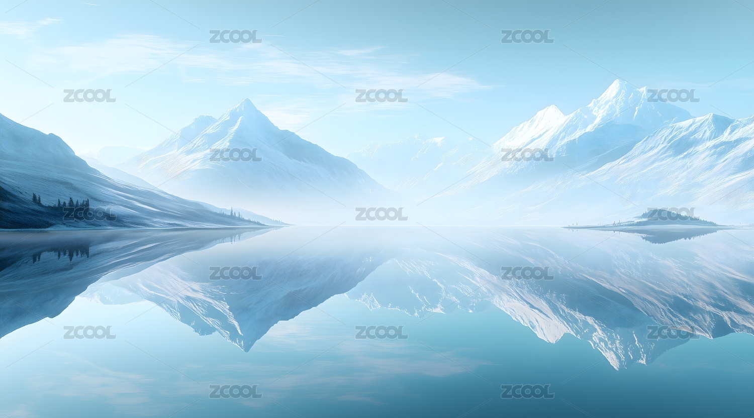 朦胧蓝色湖山设计