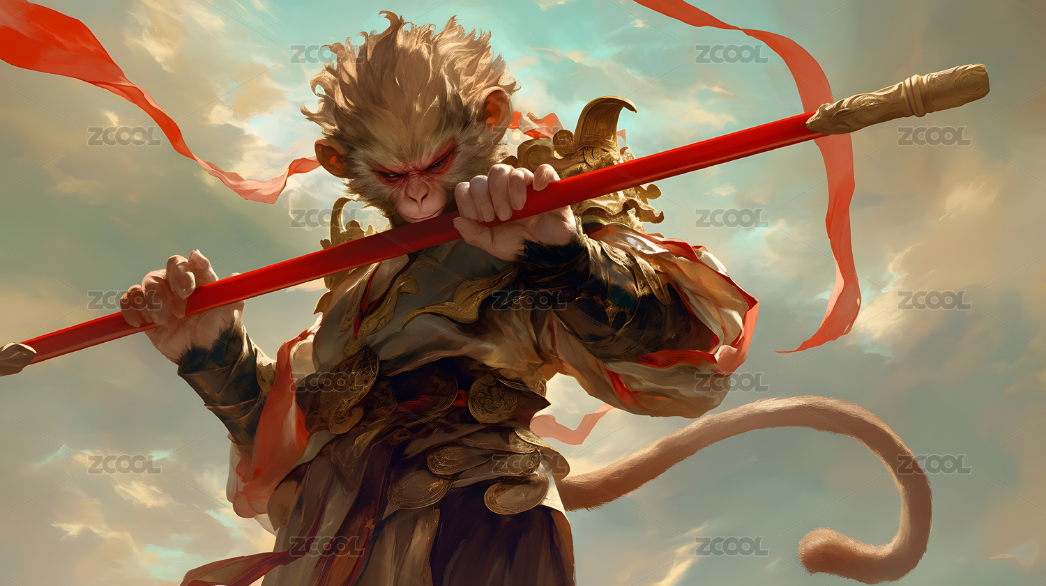 AIGC202407,中国风,国潮风,插画,悟空,猴子,孙悟空,神仙