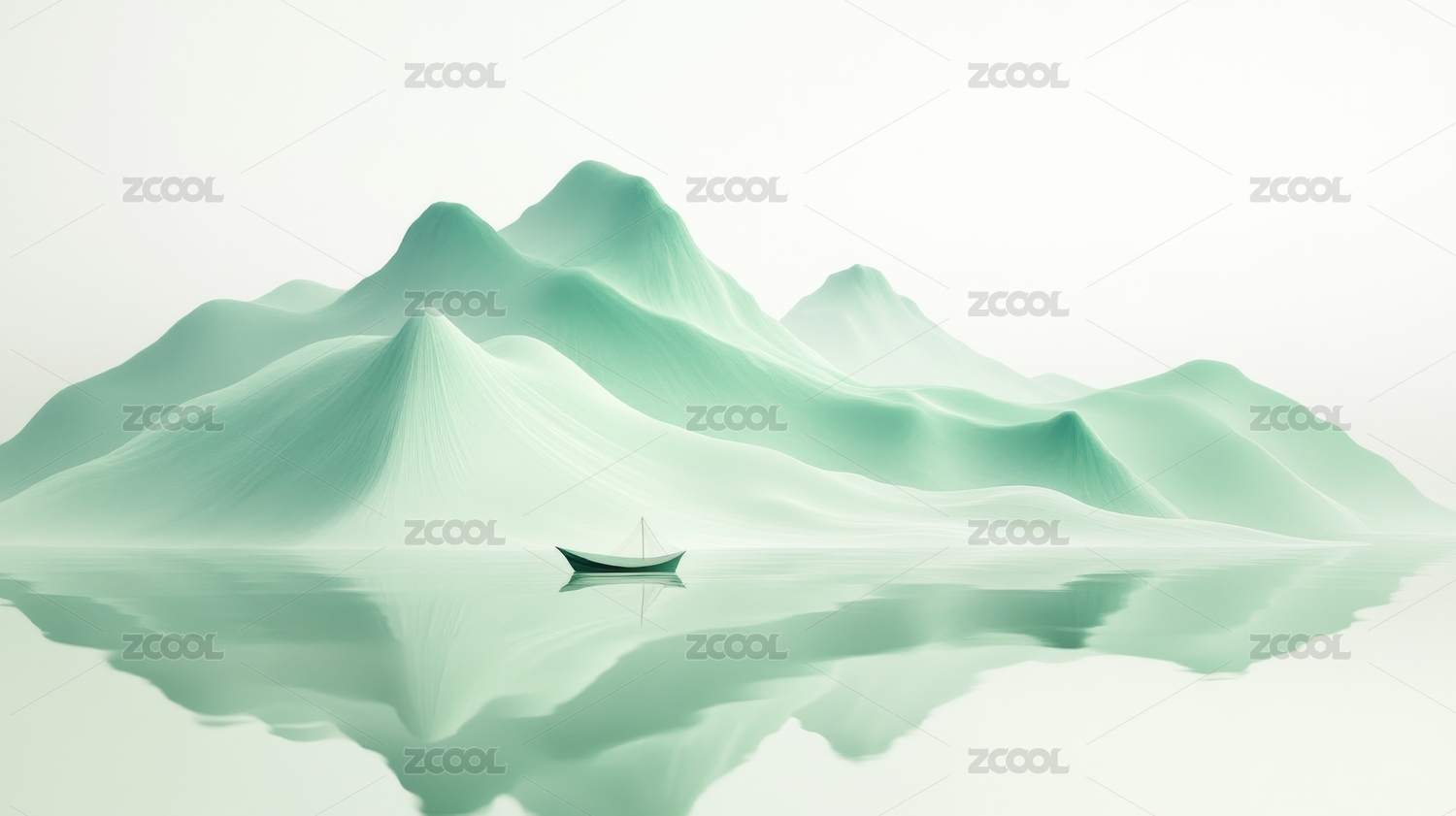 中国风,国潮风,3D,立体,古代,建筑,风景,船,青山,湖泊