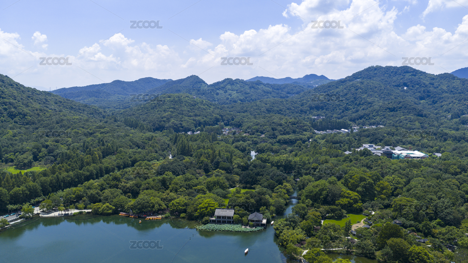 杭州西湖浴鹄湾九曜山江南春天亭台楼阁