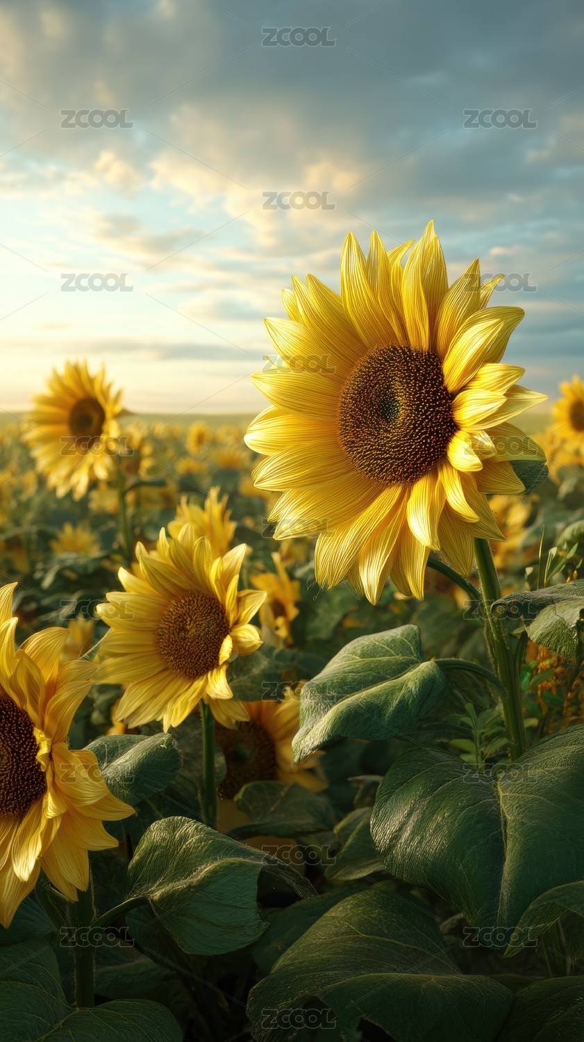 向日葵田的金色夕阳