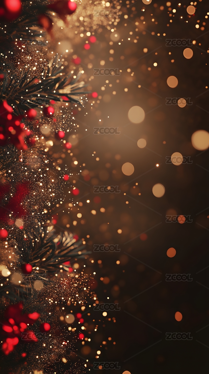 圣诞松树与金色粒子的冬日气息