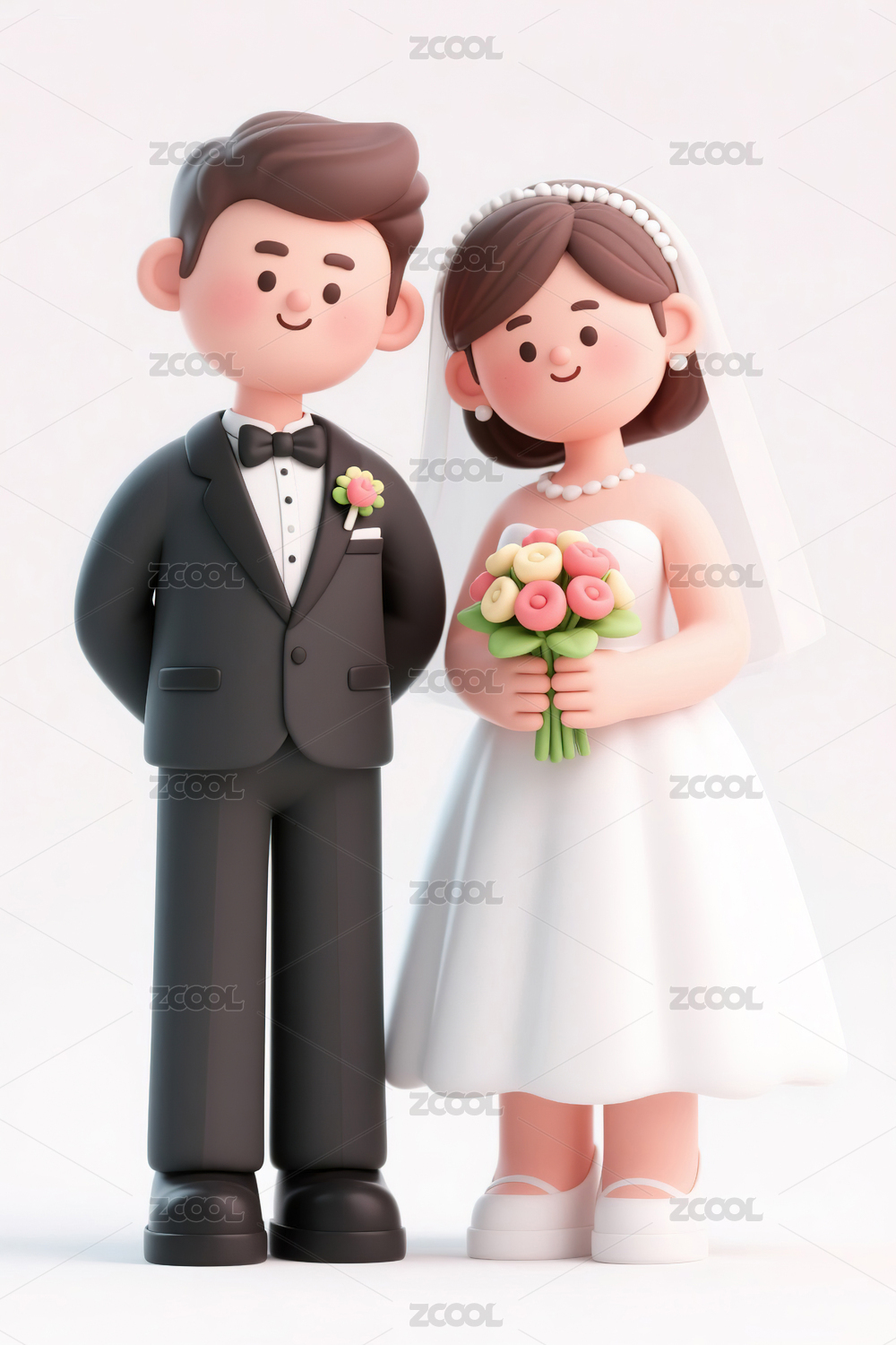 卡通,可爱,3D,幸福,模型,插画,浪漫,甜蜜,新婚夫妇,婚礼