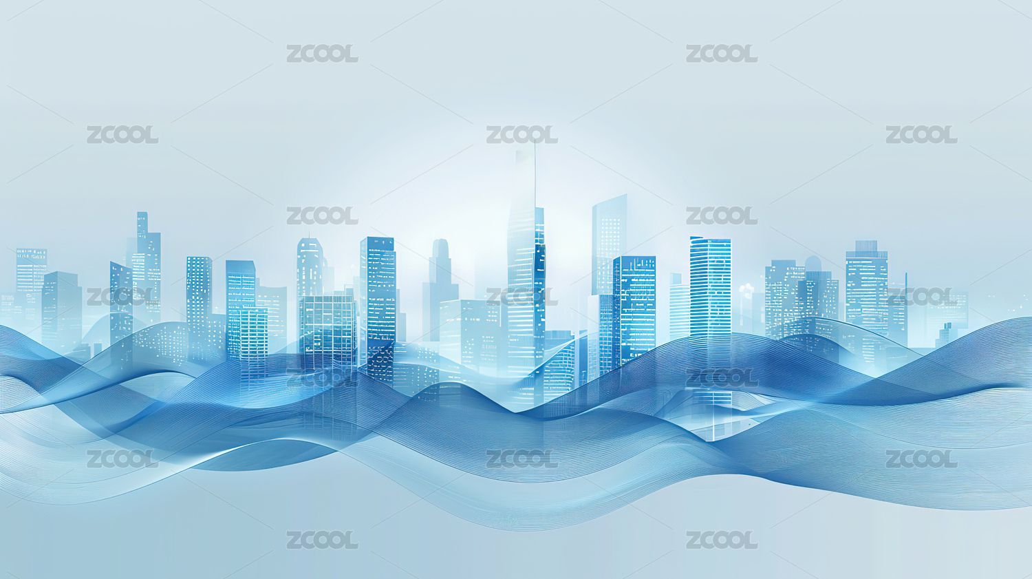 蓝色现代高楼波浪线