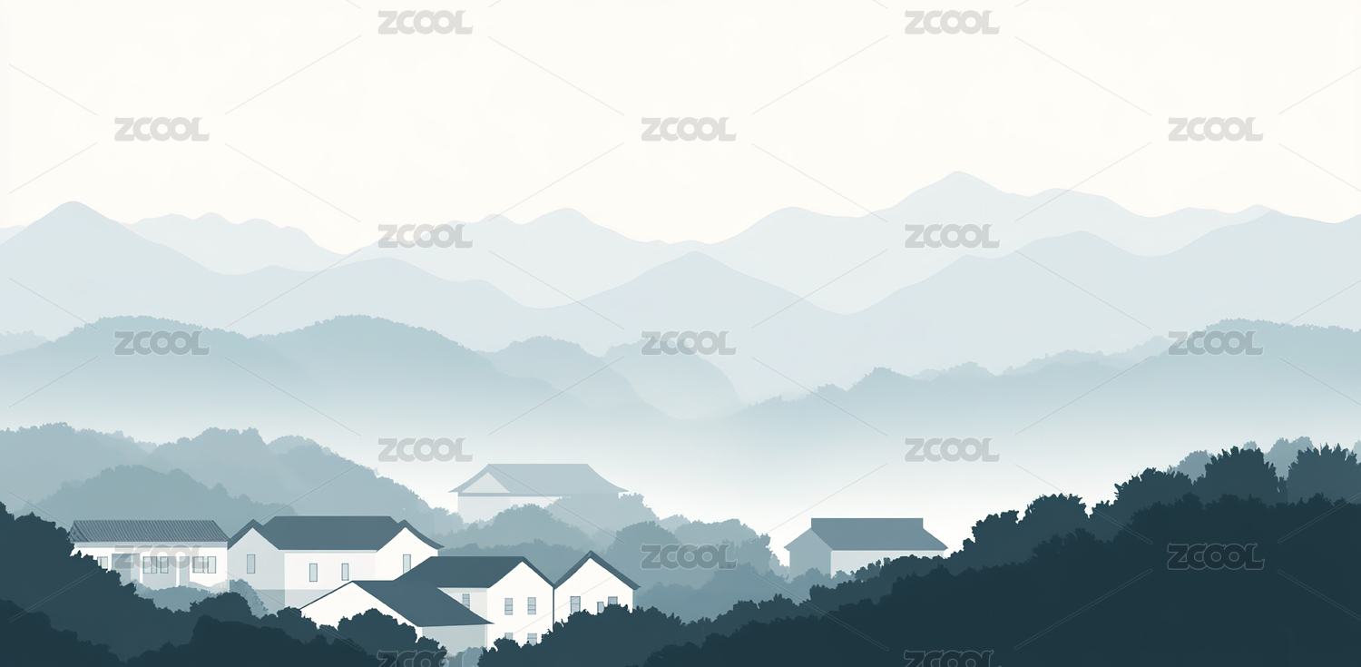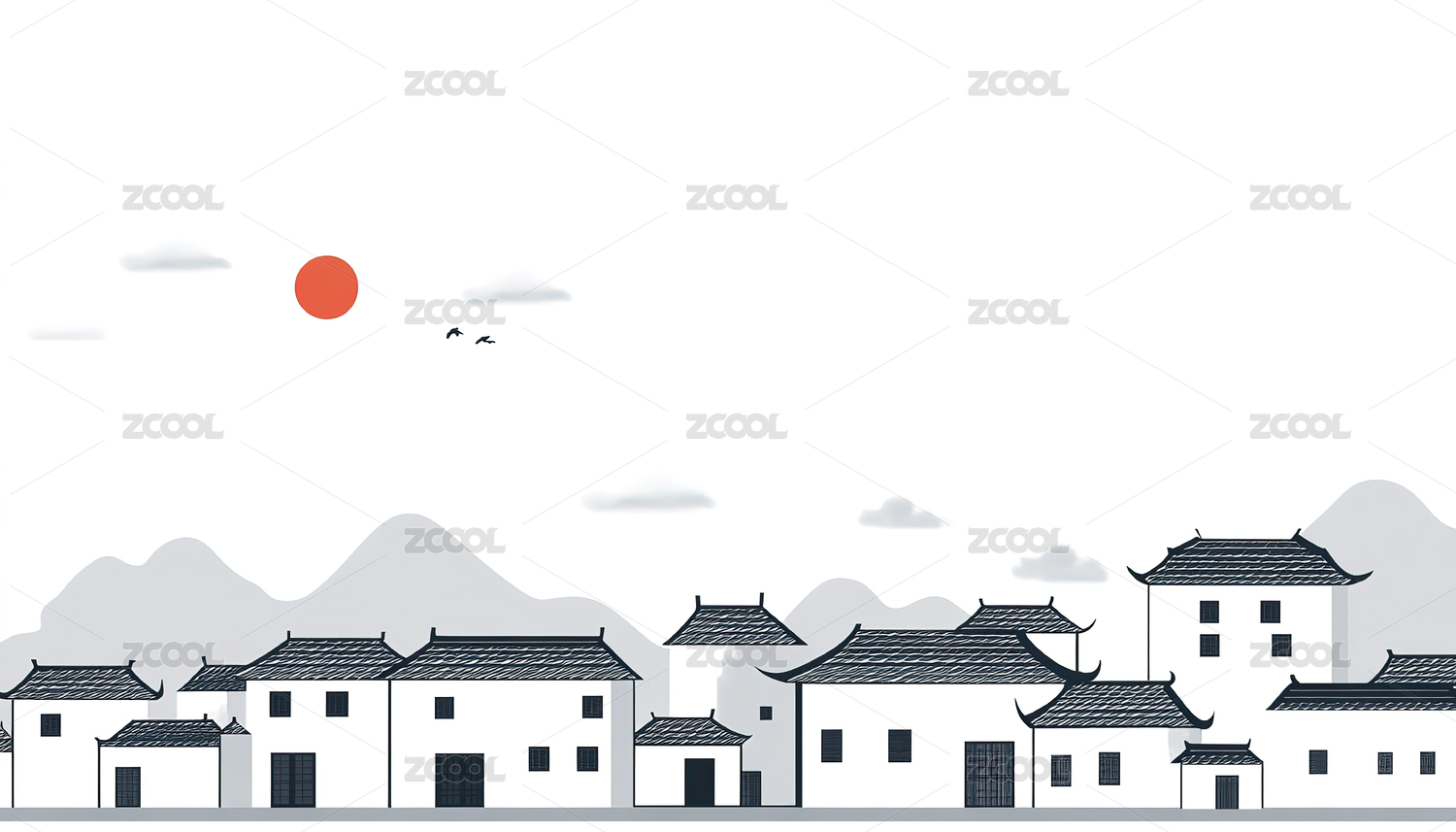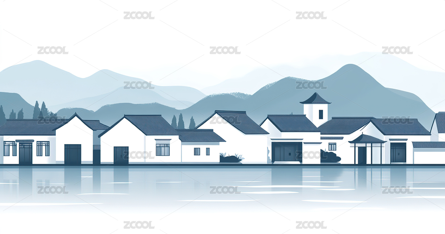 夏季 徽州建筑文艺小清新手绘风景矢量
