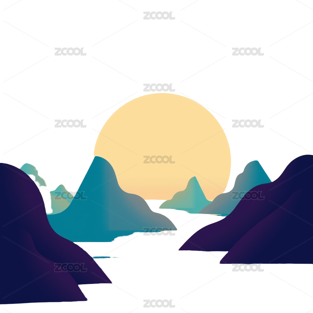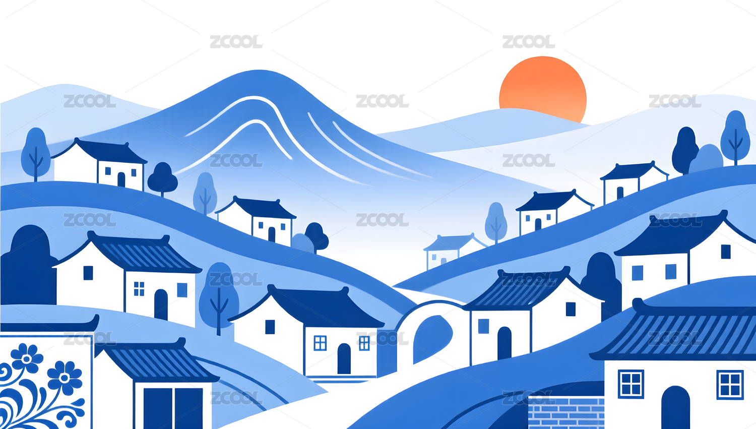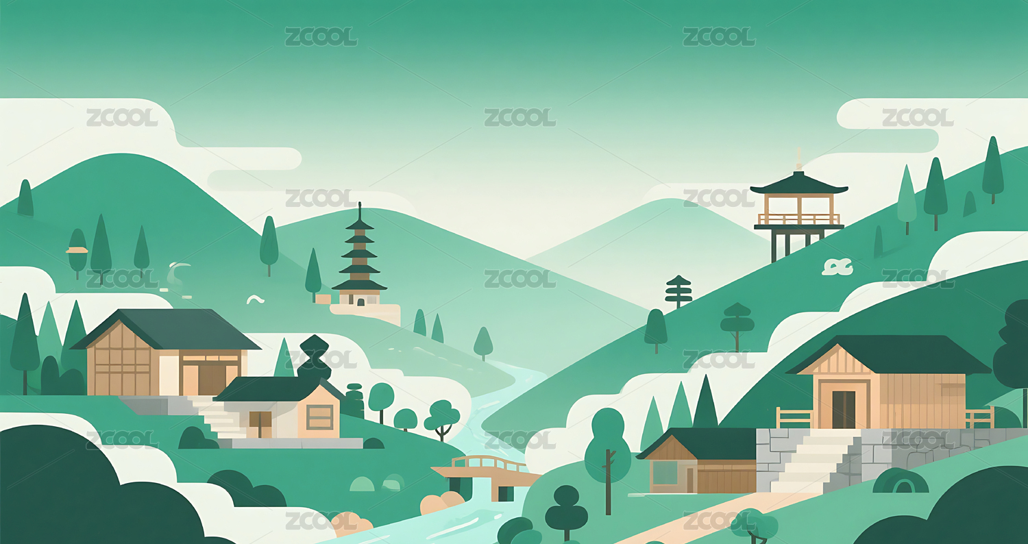 夏季 徽州建筑文艺小清新手绘风景矢量