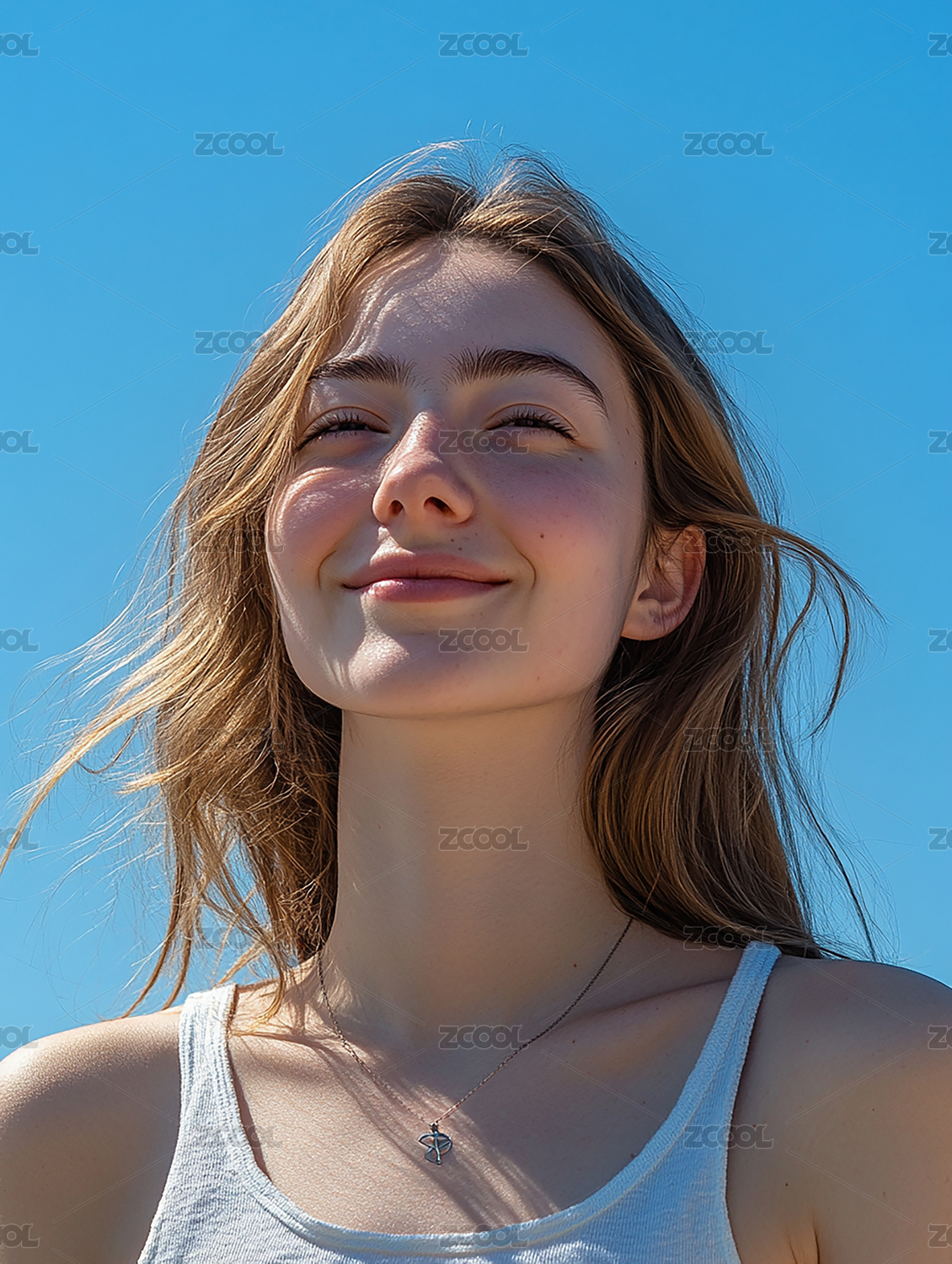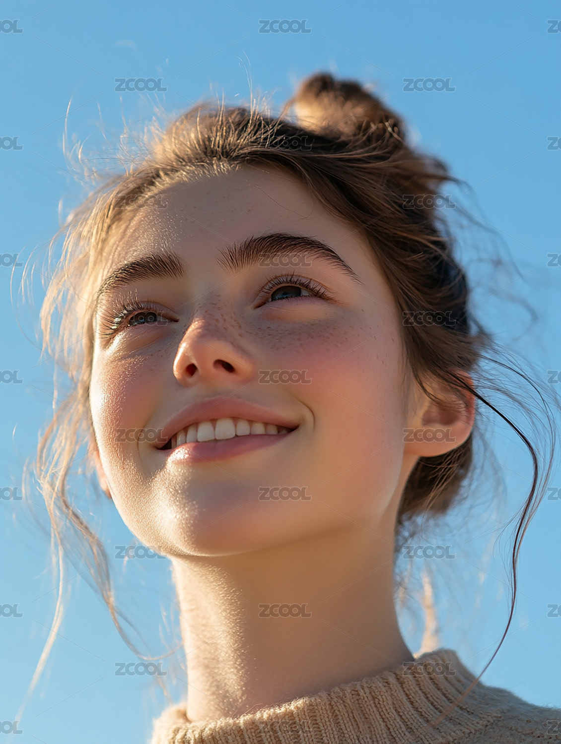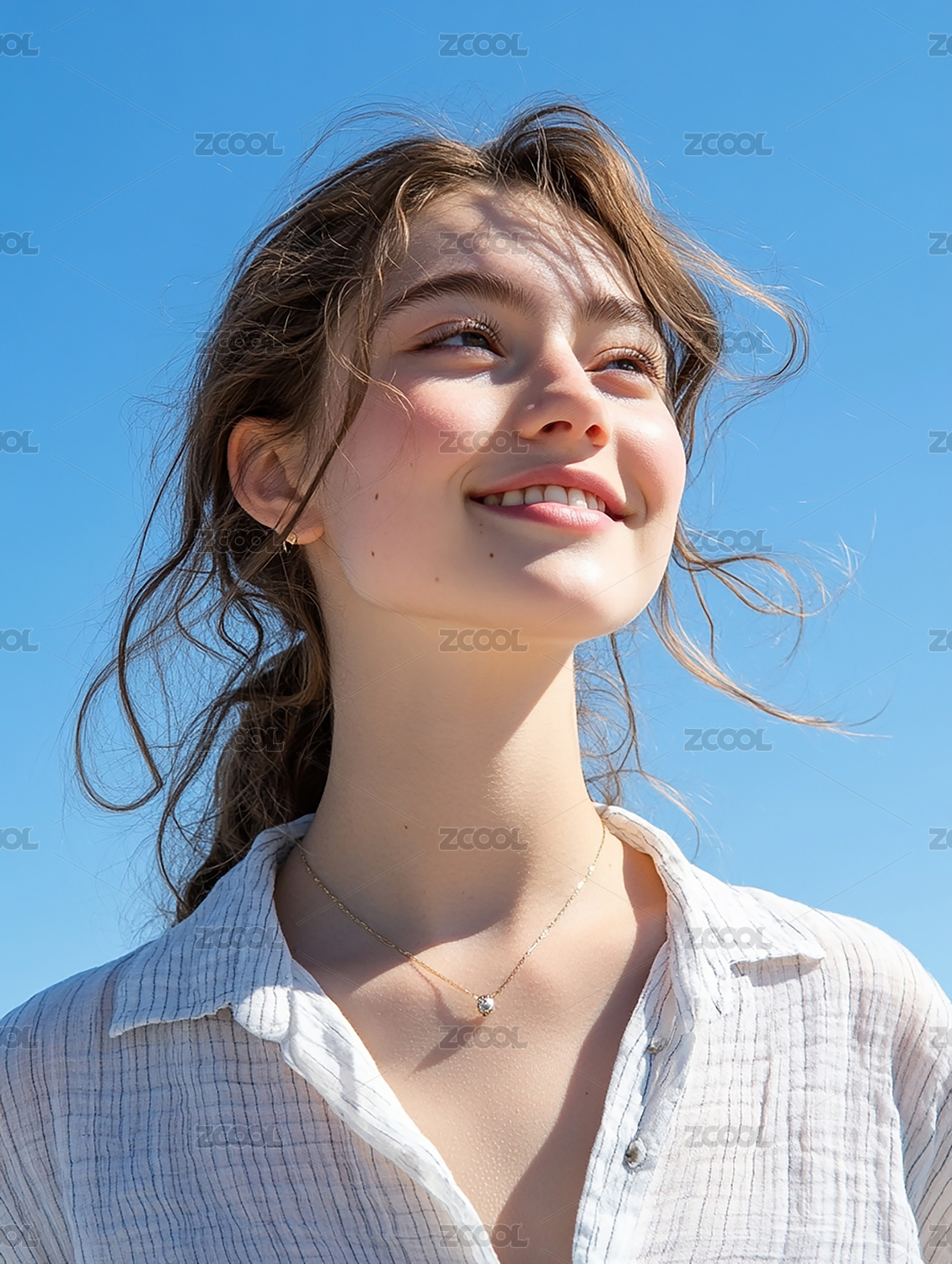 美女,女性,微笑女性,蓝天,美丽,女孩,模特,特写,美女特写,头像