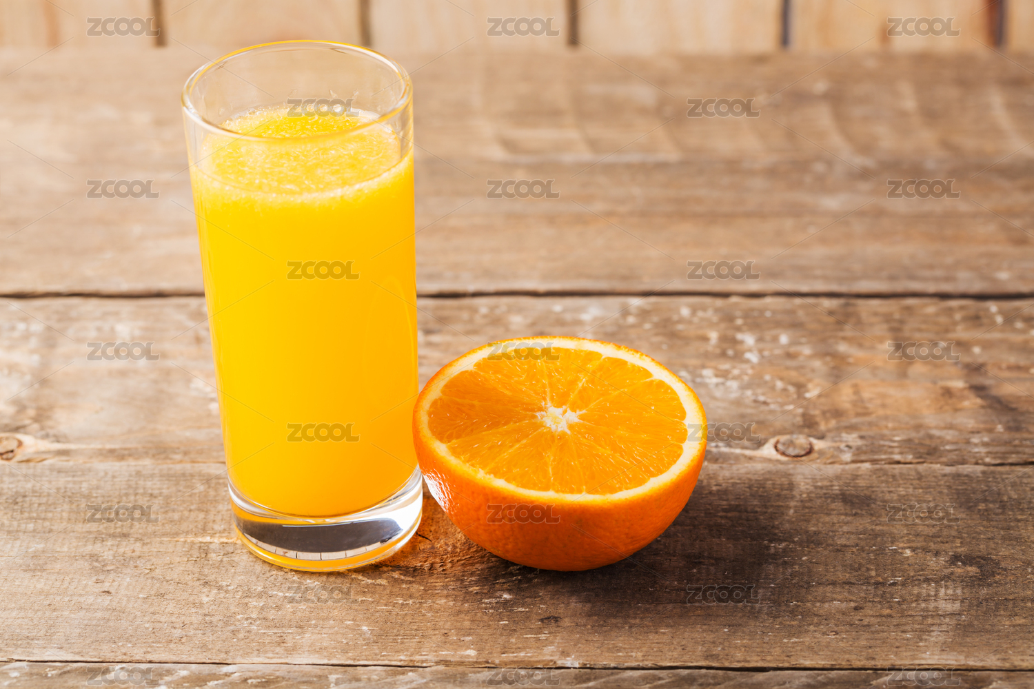 鲜榨橙汁,一杯橙汁和橙子在桌子上