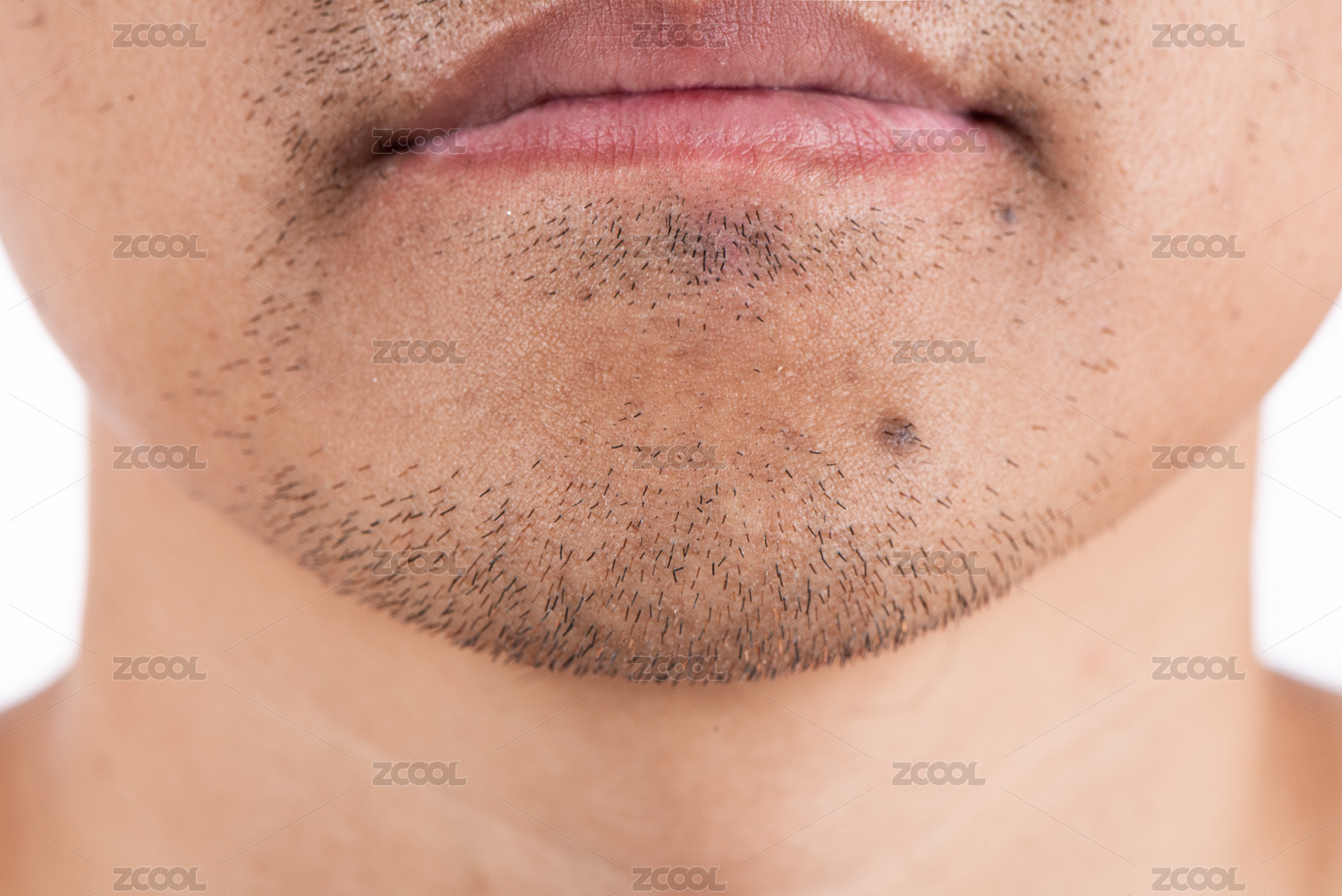 白色背景里的正在涂抹洗面奶的亚洲男士面部特写,化妆护肤整容