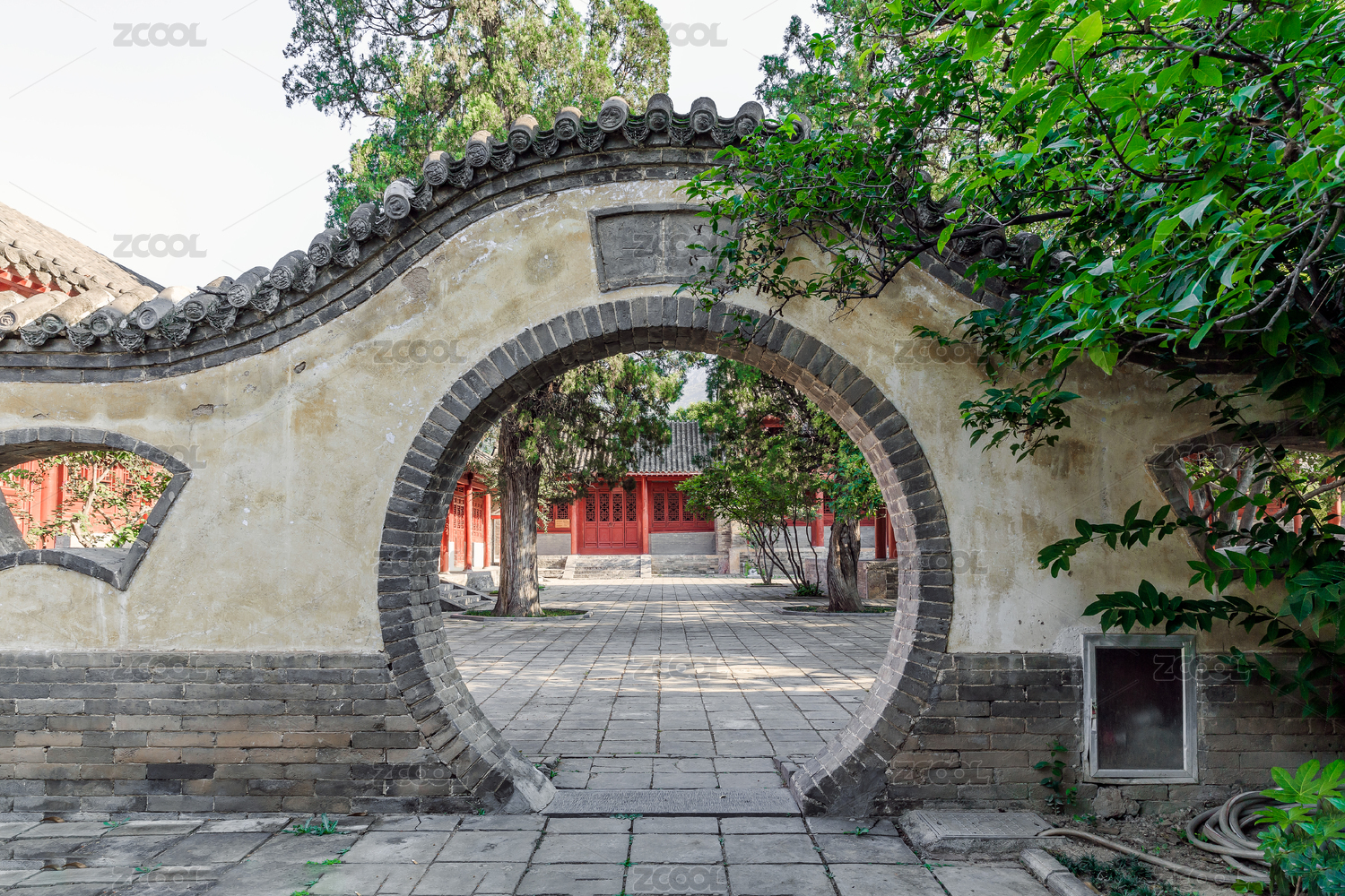 山东省政府和八路军115师司令部旧址景区内的古典园林门建筑,中国山东省临沂市沂南县大店镇