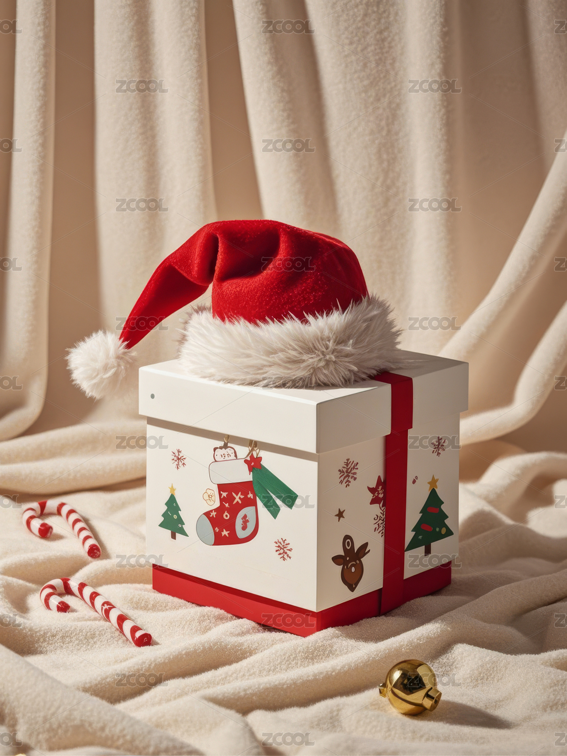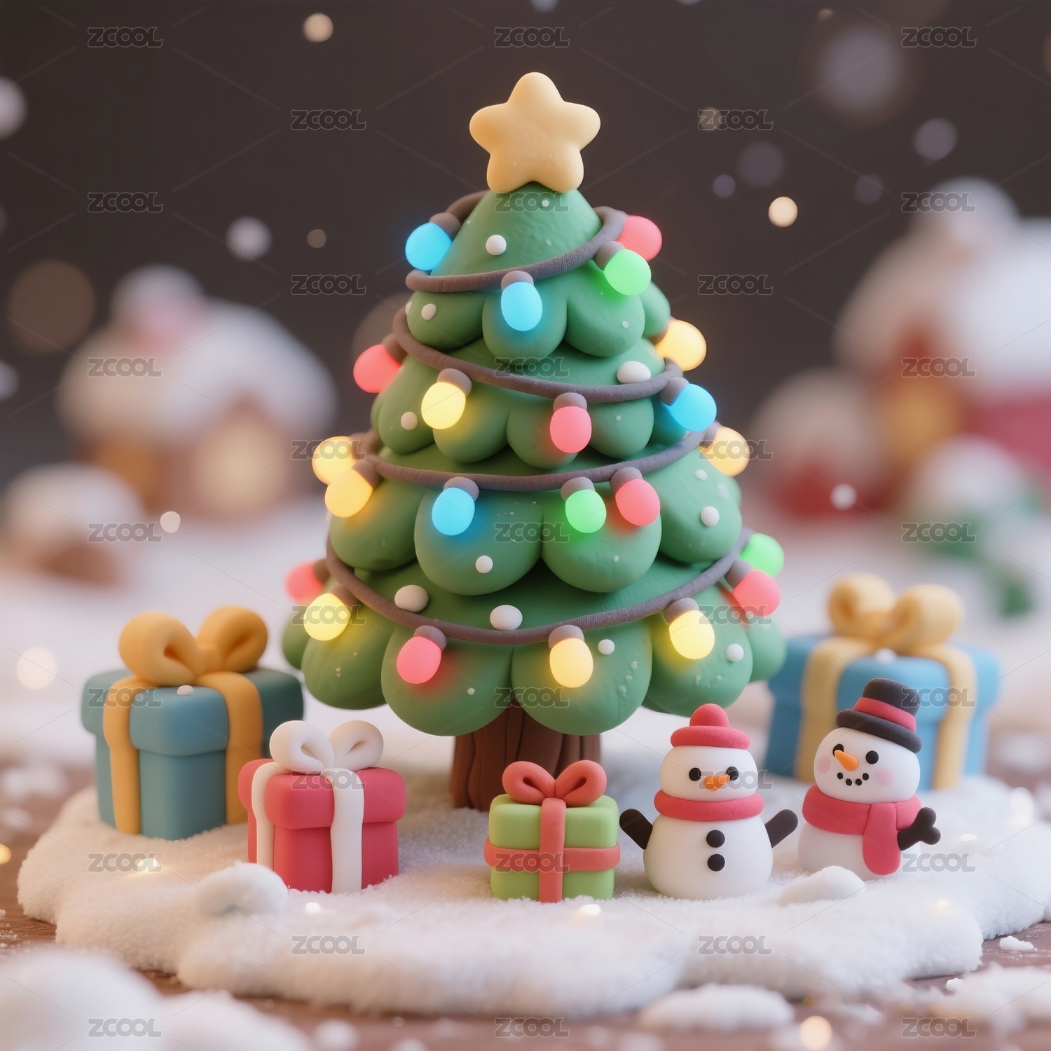 木制盒子,圣诞树,雪人,驯鹿,礼物盒,圣诞老人,圣诞花环,色彩鲜艳,细节丰富,温馨