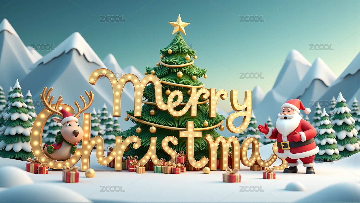 圣诞节,圣诞快乐,圣诞老人,圣诞树,海报,雪山,礼物盒,桌面,宣传画,雪地