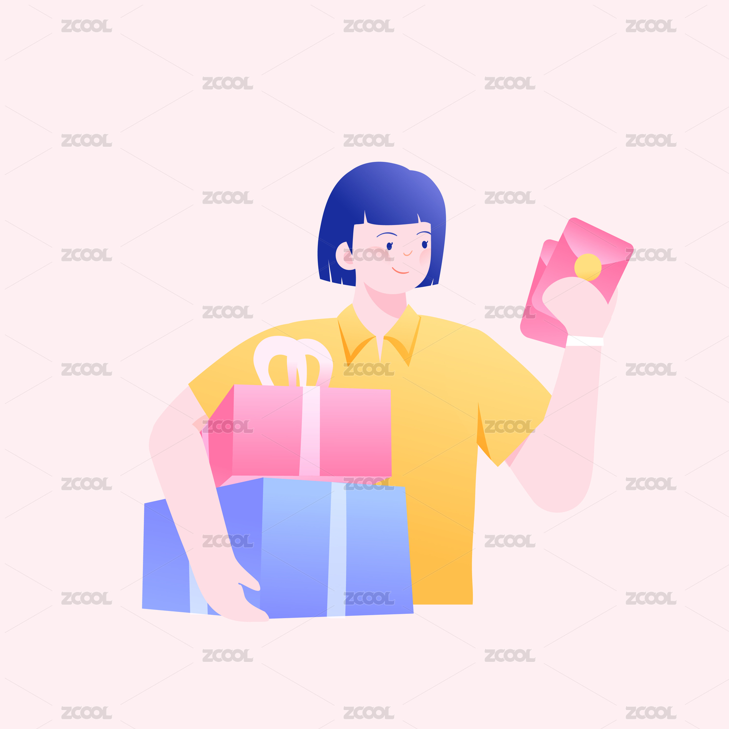 可爱圣诞节节日礼物礼盒人物卡通插画