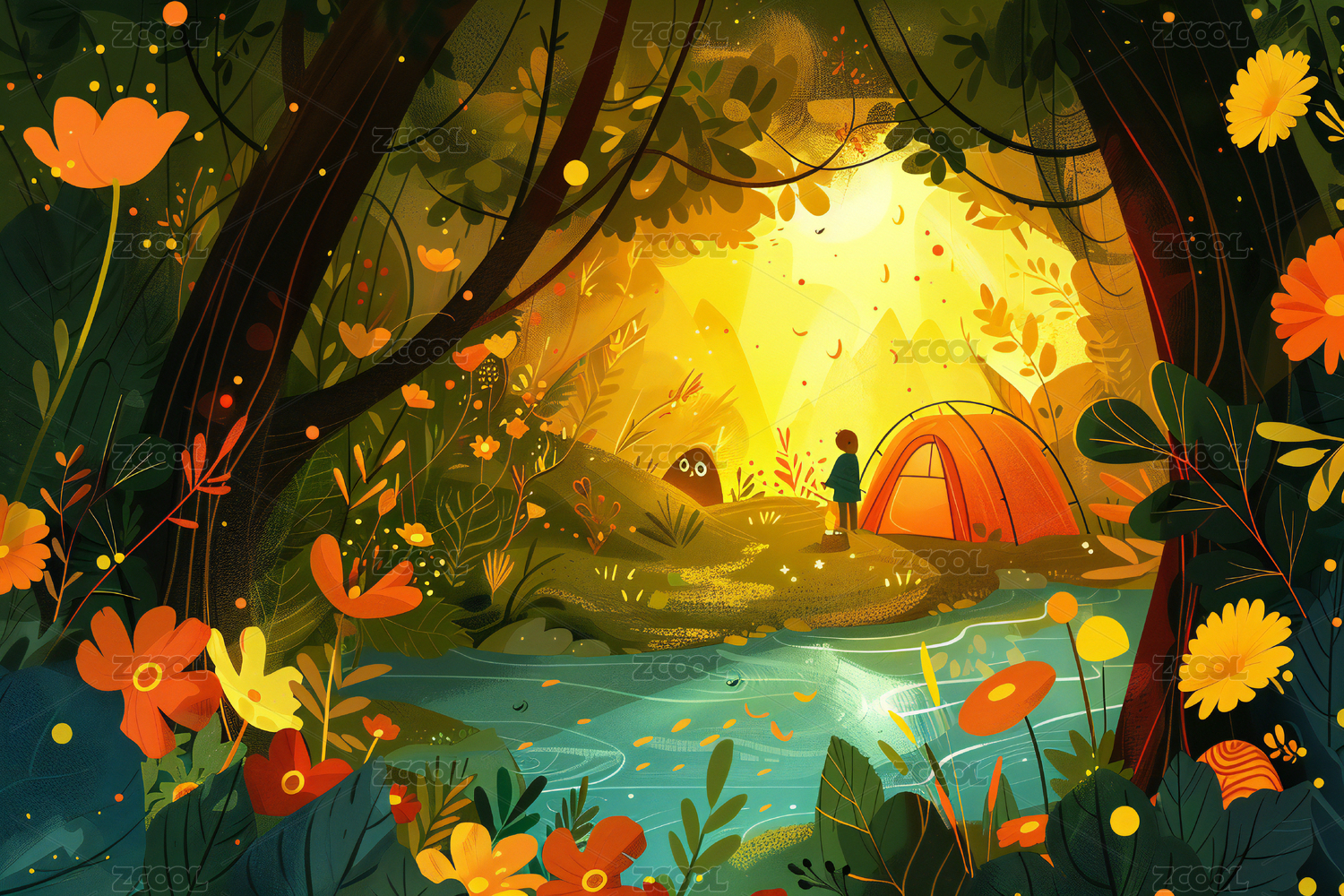 背景,扁平,户外,露营,旅行,旅游,美食,生活,暑假,夏季