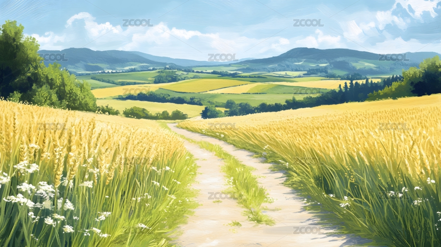 田园麦田风景插画