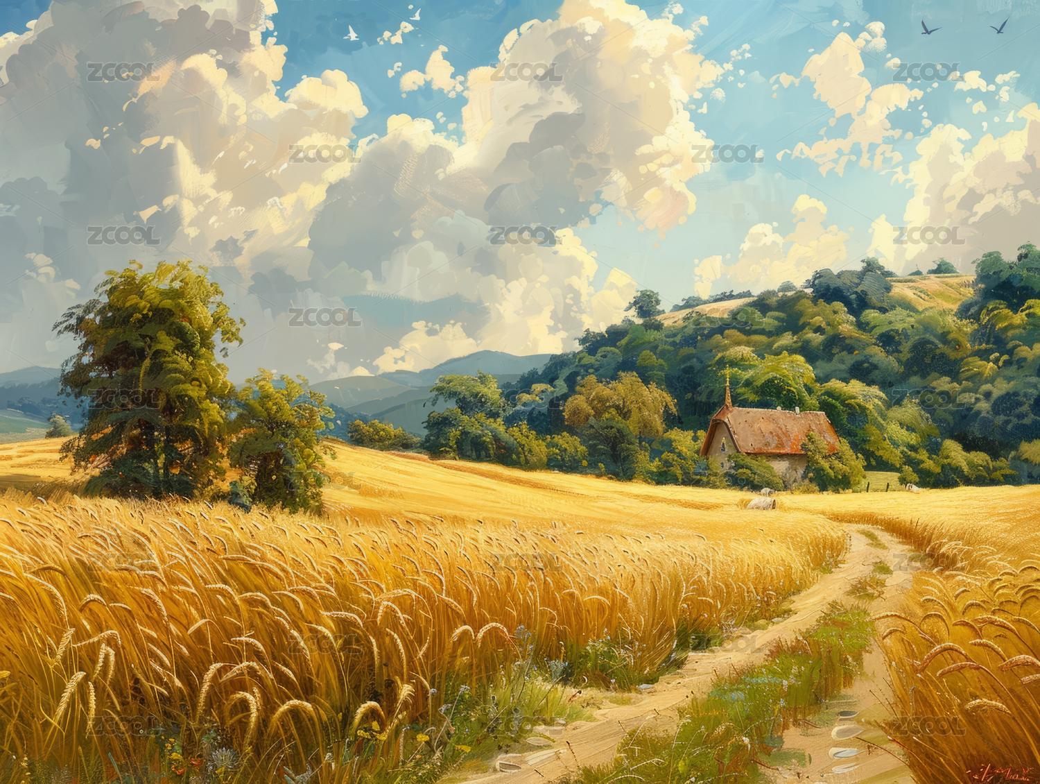 金色麦田与小屋主题