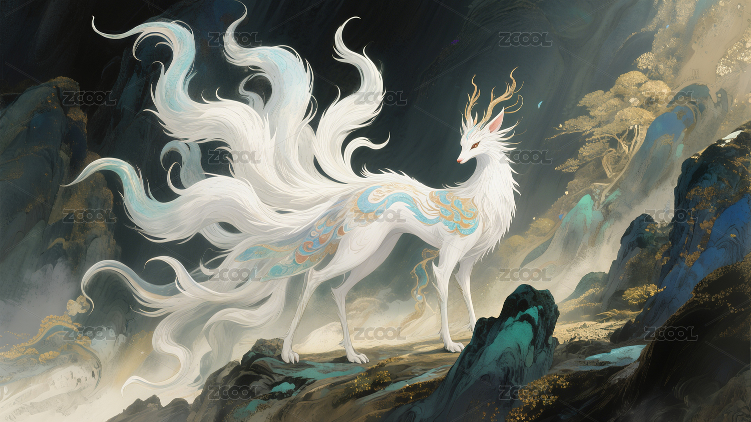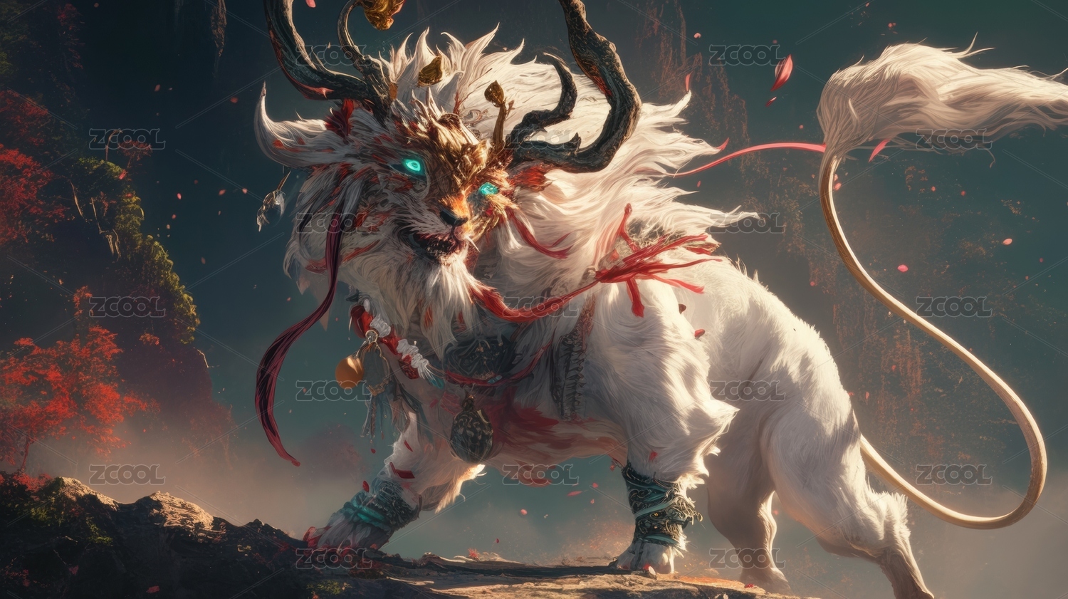 白色神兽悬崖峭壁仙境