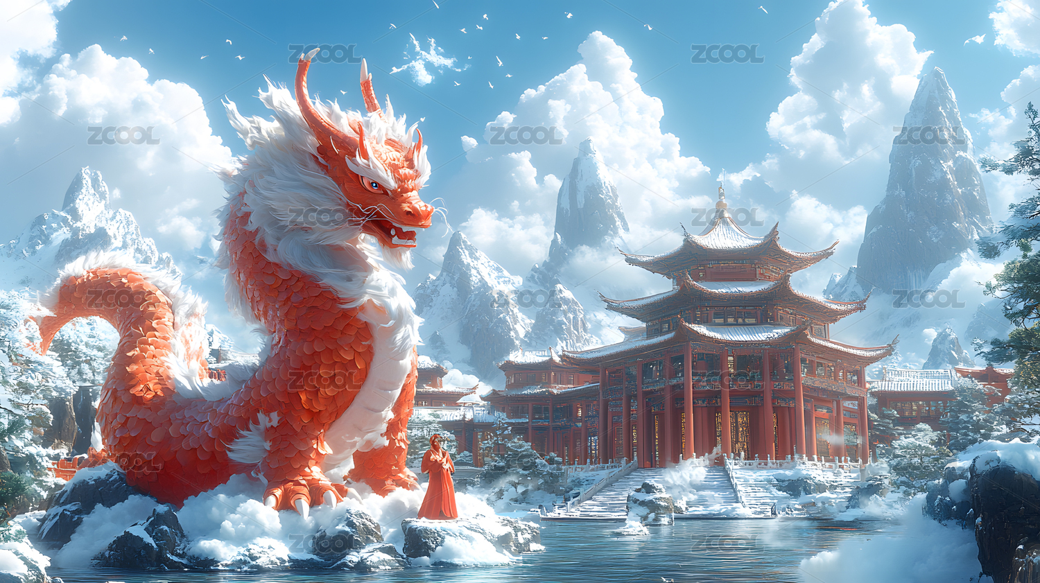 雪山寺庙巨龙守护者