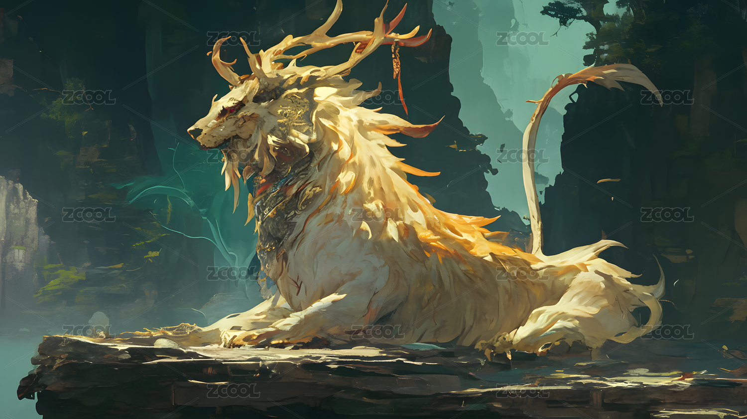 金色鹿角狮守护森林