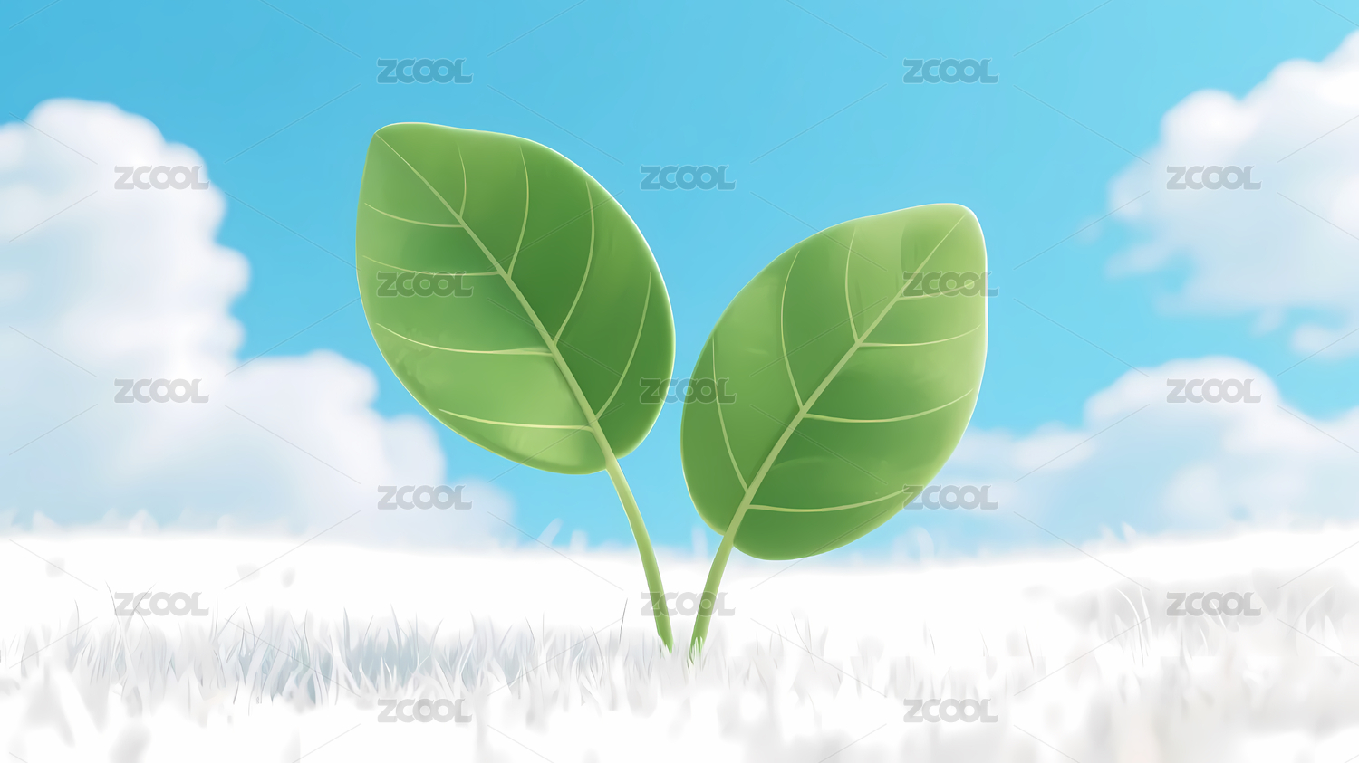 发芽,茶叶,新生,蓝天,白云,无人,背景,留白,自然,插画