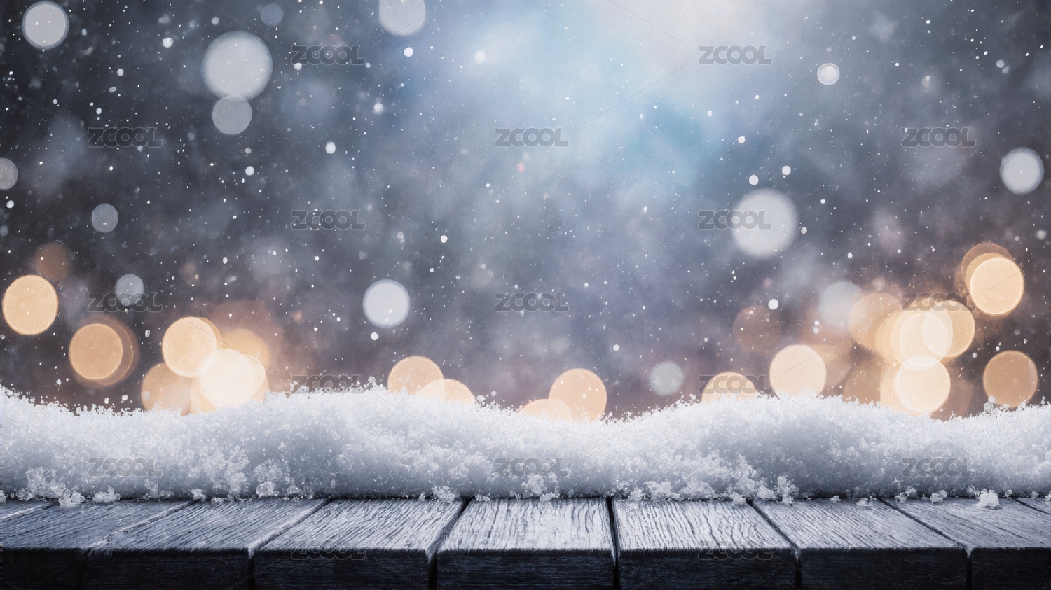 冬日雪景木桌