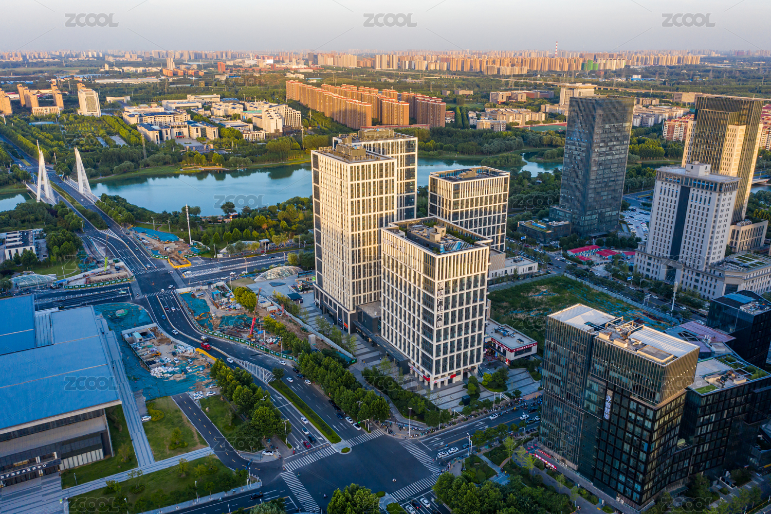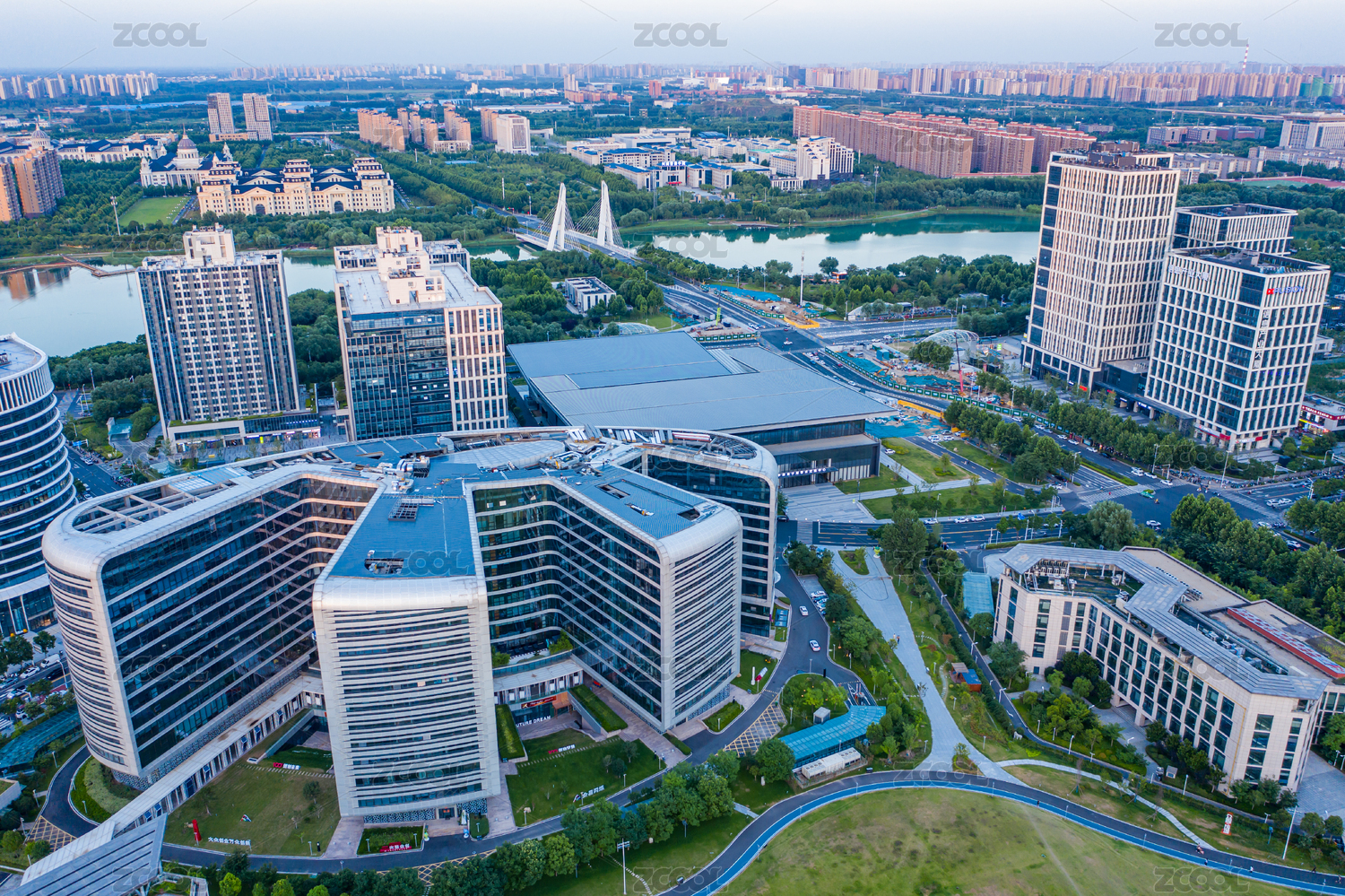 航拍中国河南郑州郑东新区中原龙子湖智慧岛