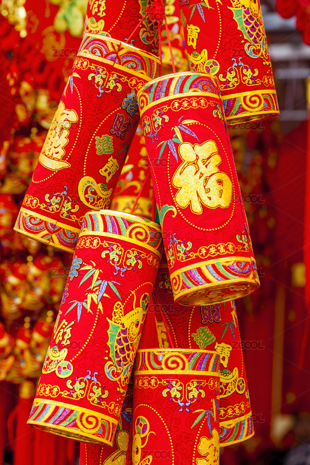 中国新年春节红灯笼鞭炮挂件饰物