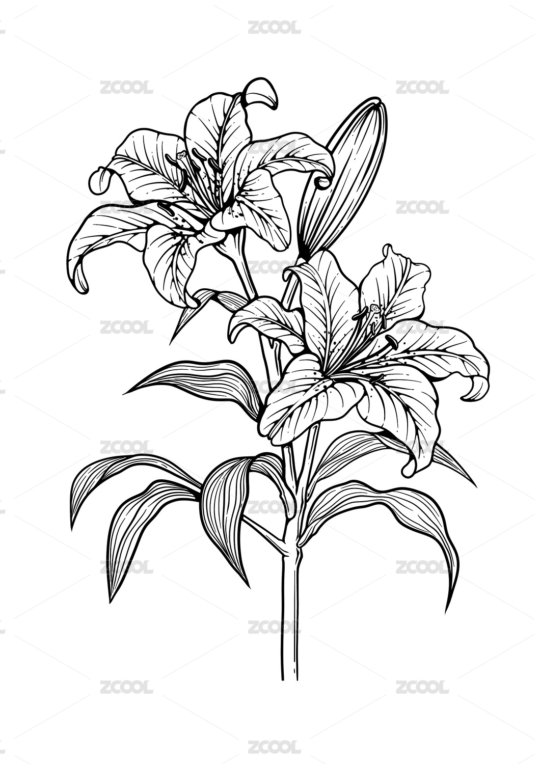 线描,线条,速写,线稿,简约,黑白,插画,黑色,草药,药草