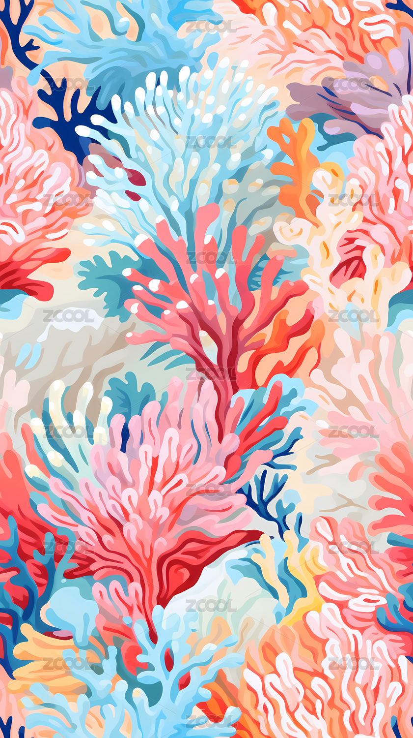 可爱明亮海洋中彩色珊瑚四方连续循环图案