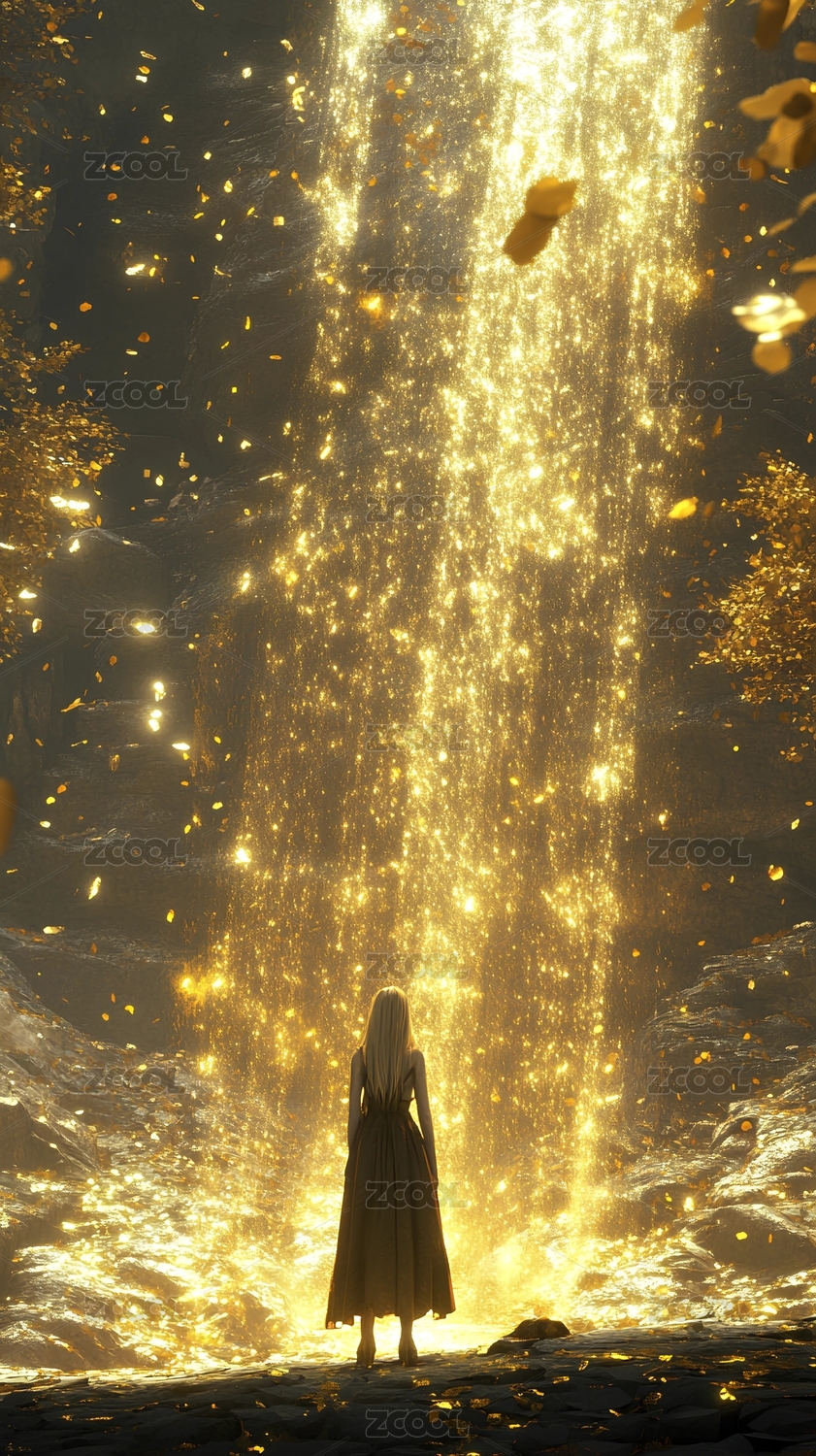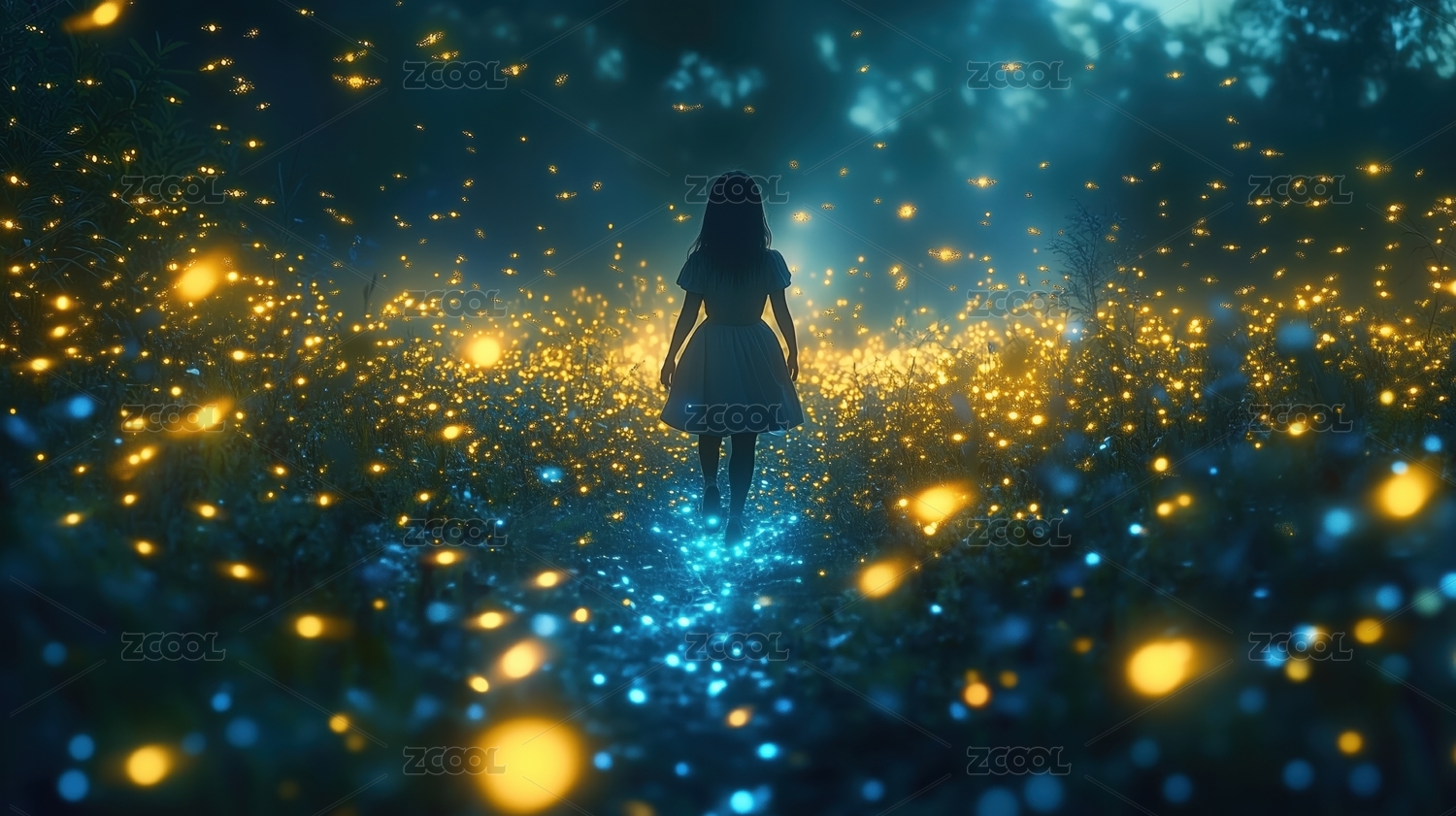 秋天的落叶铺满地上,孤独的小女孩特写背景