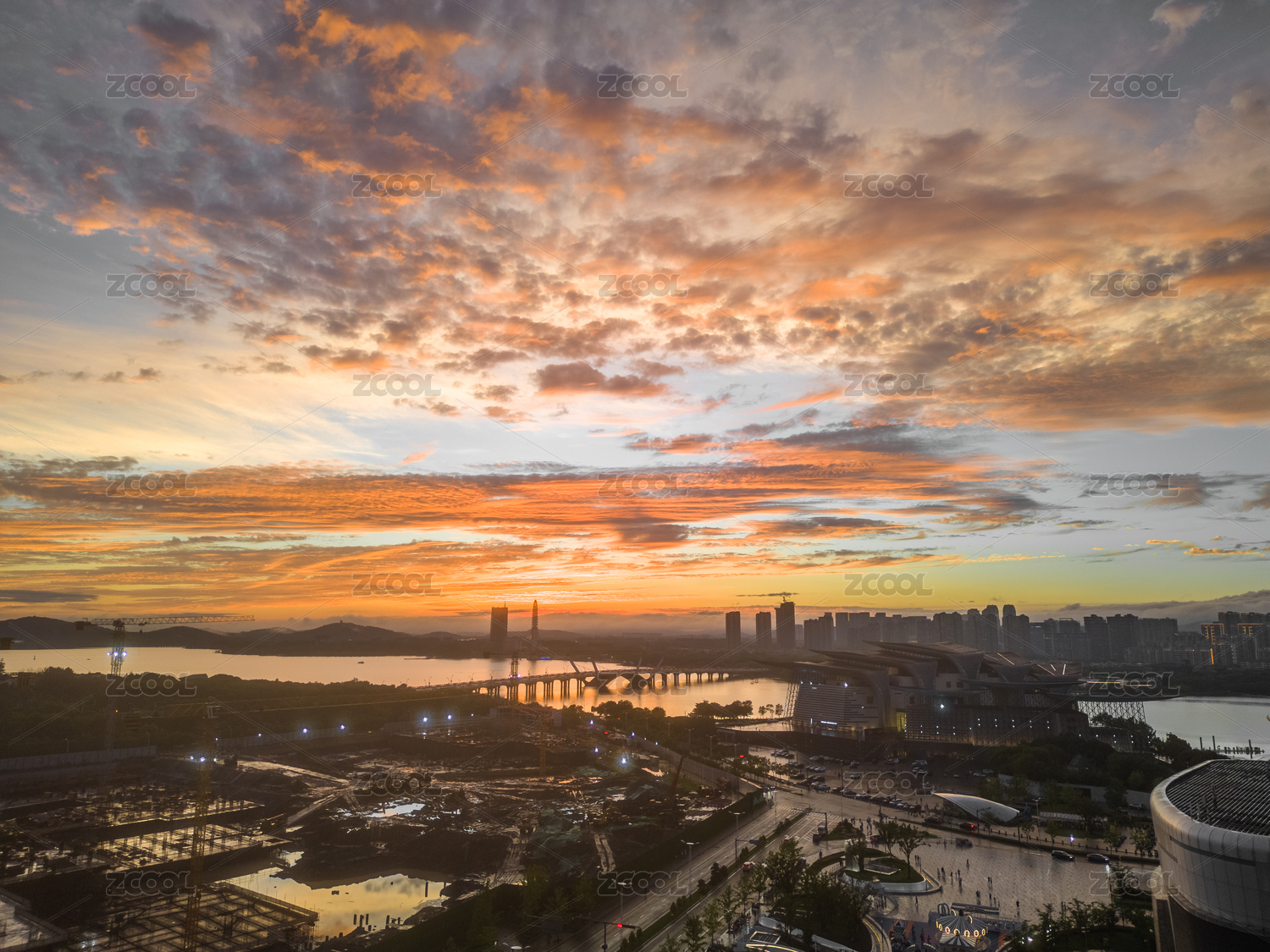 中国广东横琴粤澳深度合作区天际线日出朝霞