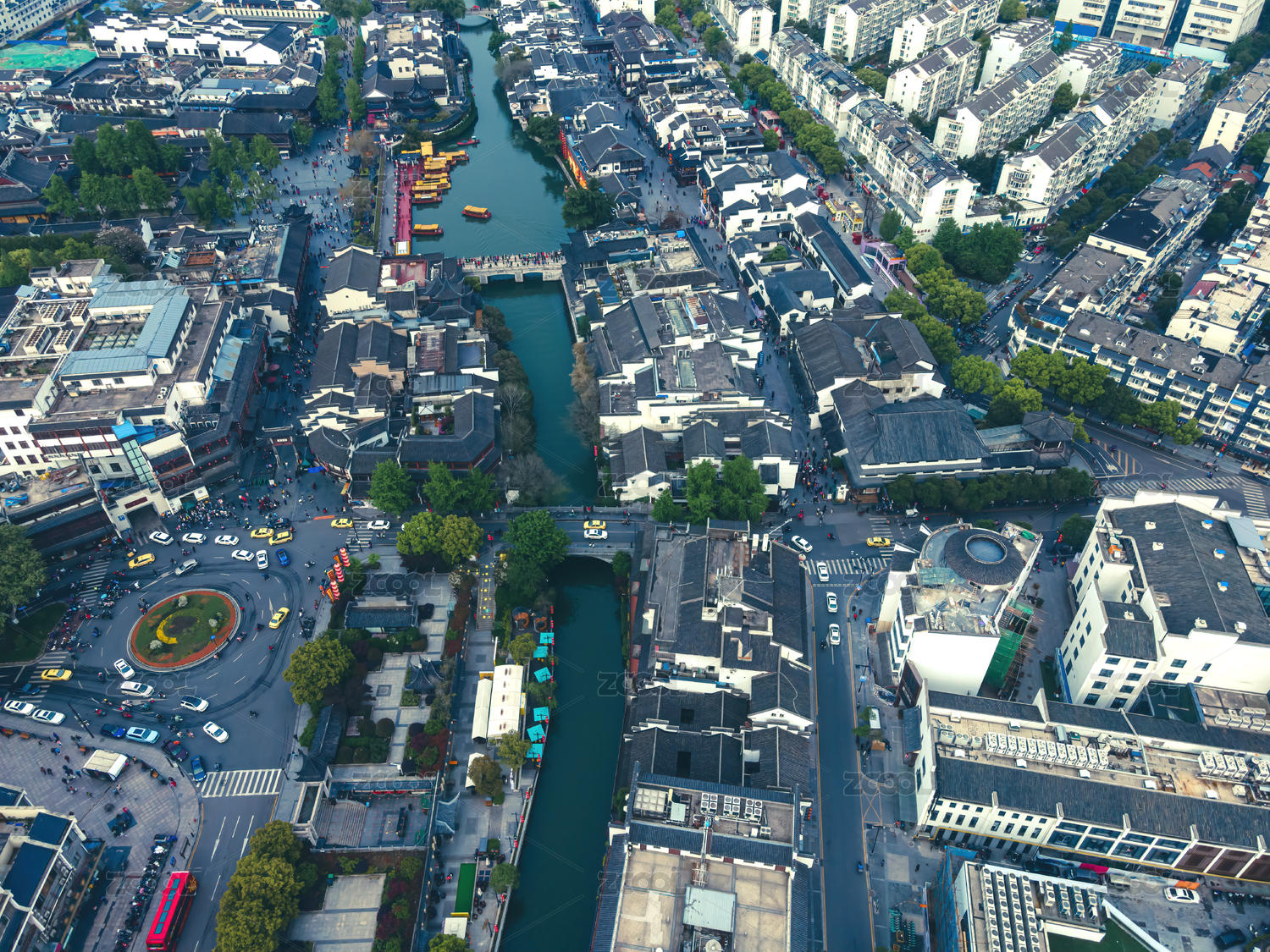 航拍南京老城秦淮河夫子庙街景