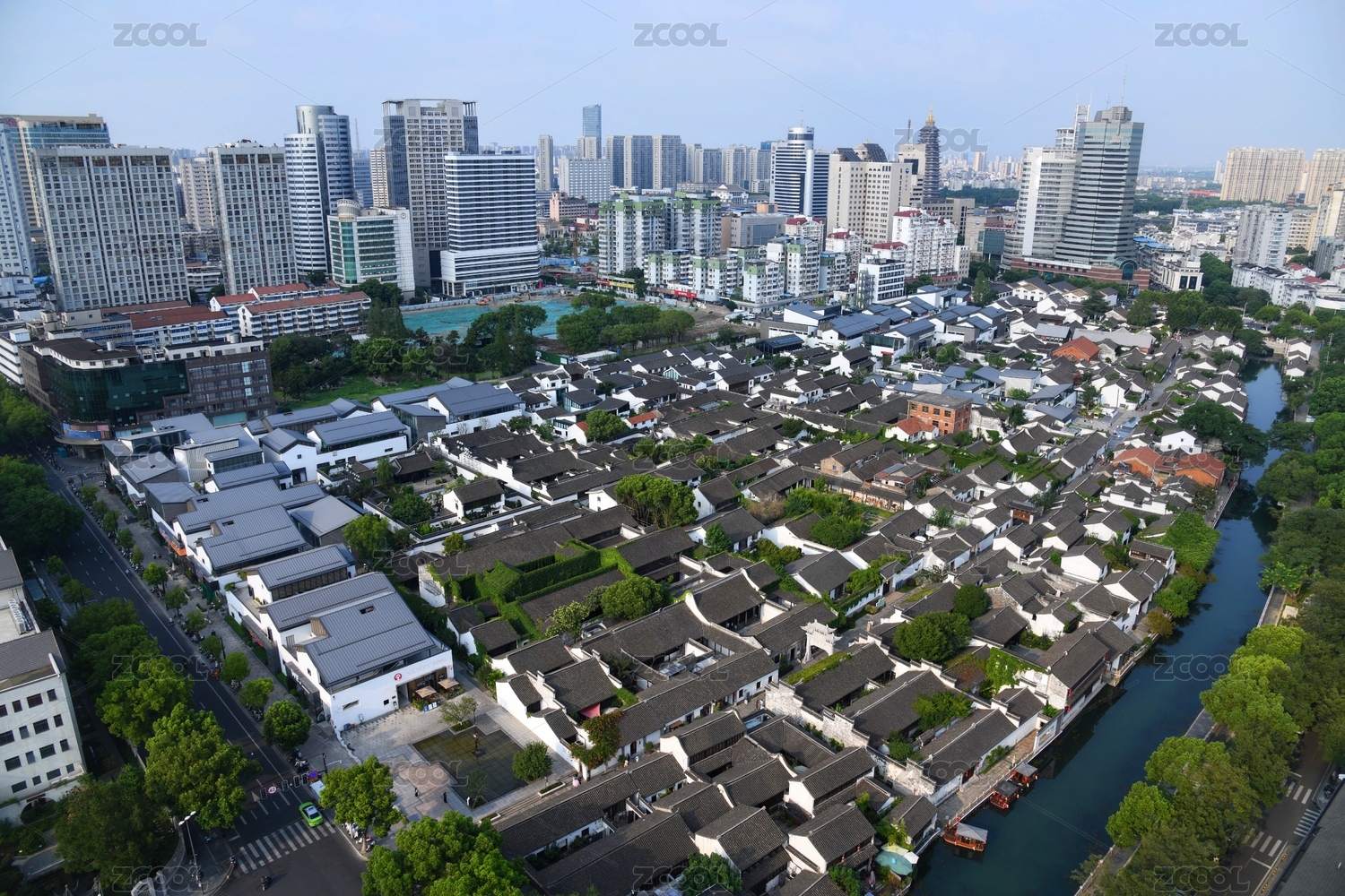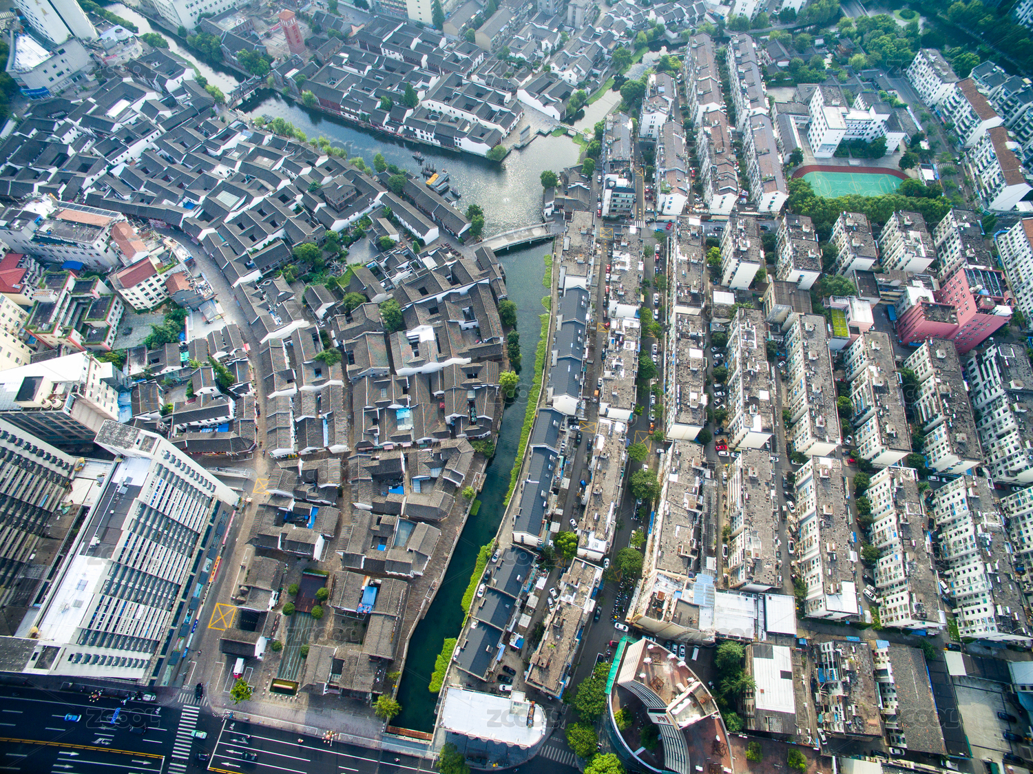 航拍,浙江,湖州,老街,衣裳街,河流,民居,瓦屋,中式,传统