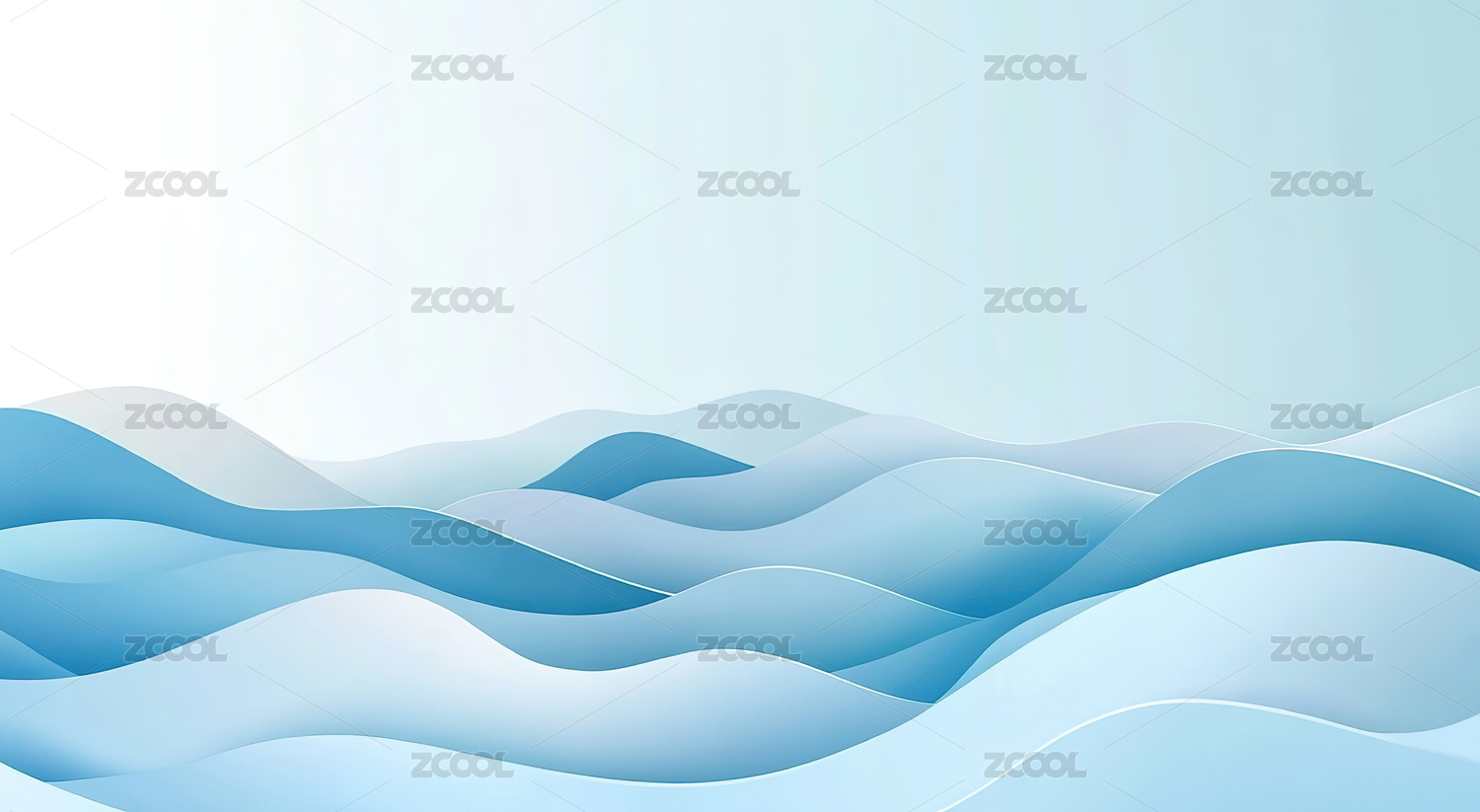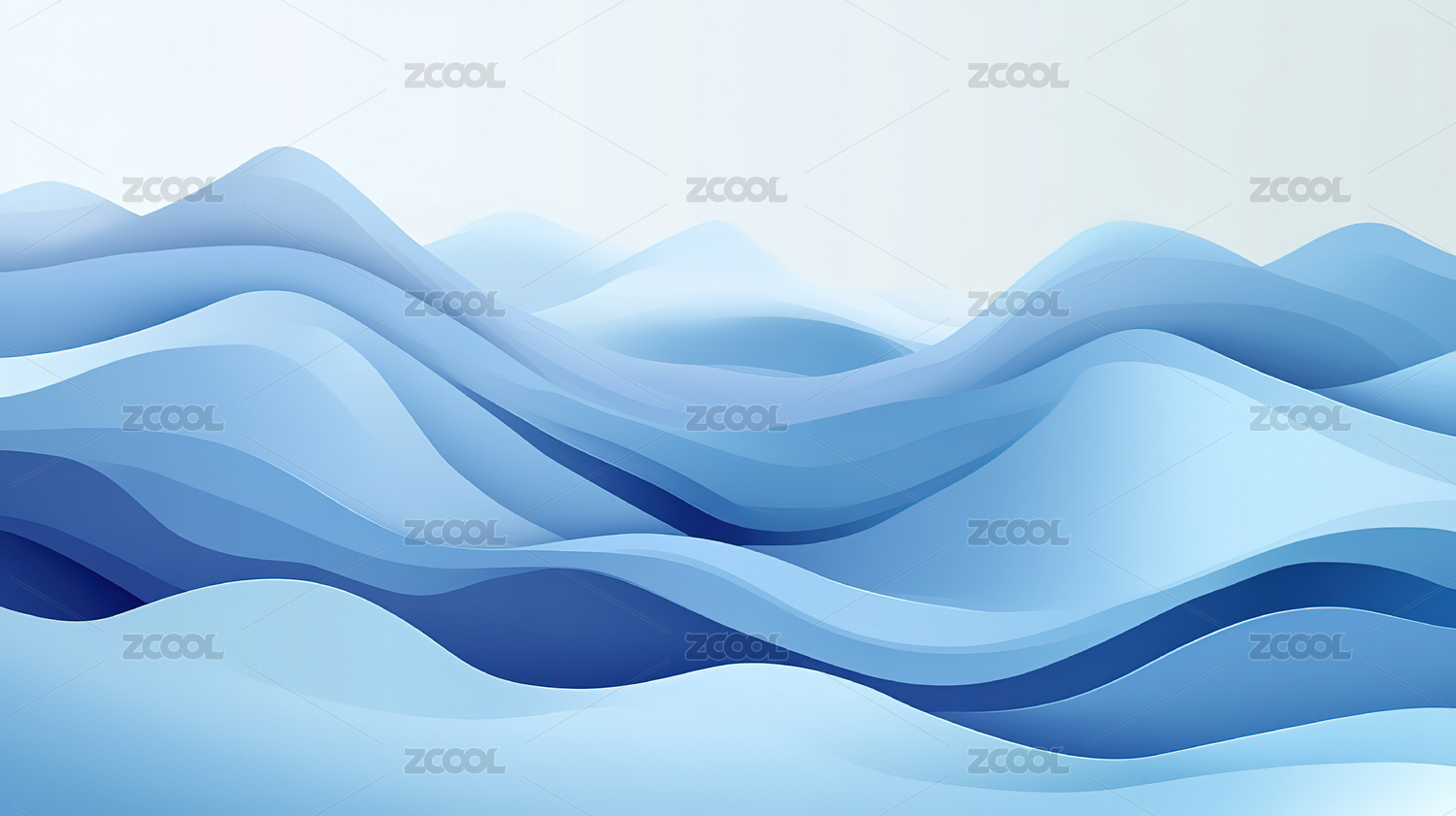 蓝色波浪起伏抽象背景图,线条流畅优美