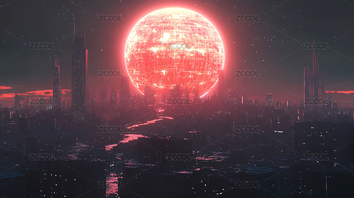 建筑, 夜晚, 灯光, 天空, 静谧,城市, 未来, 科幻, 氛围, 夜景