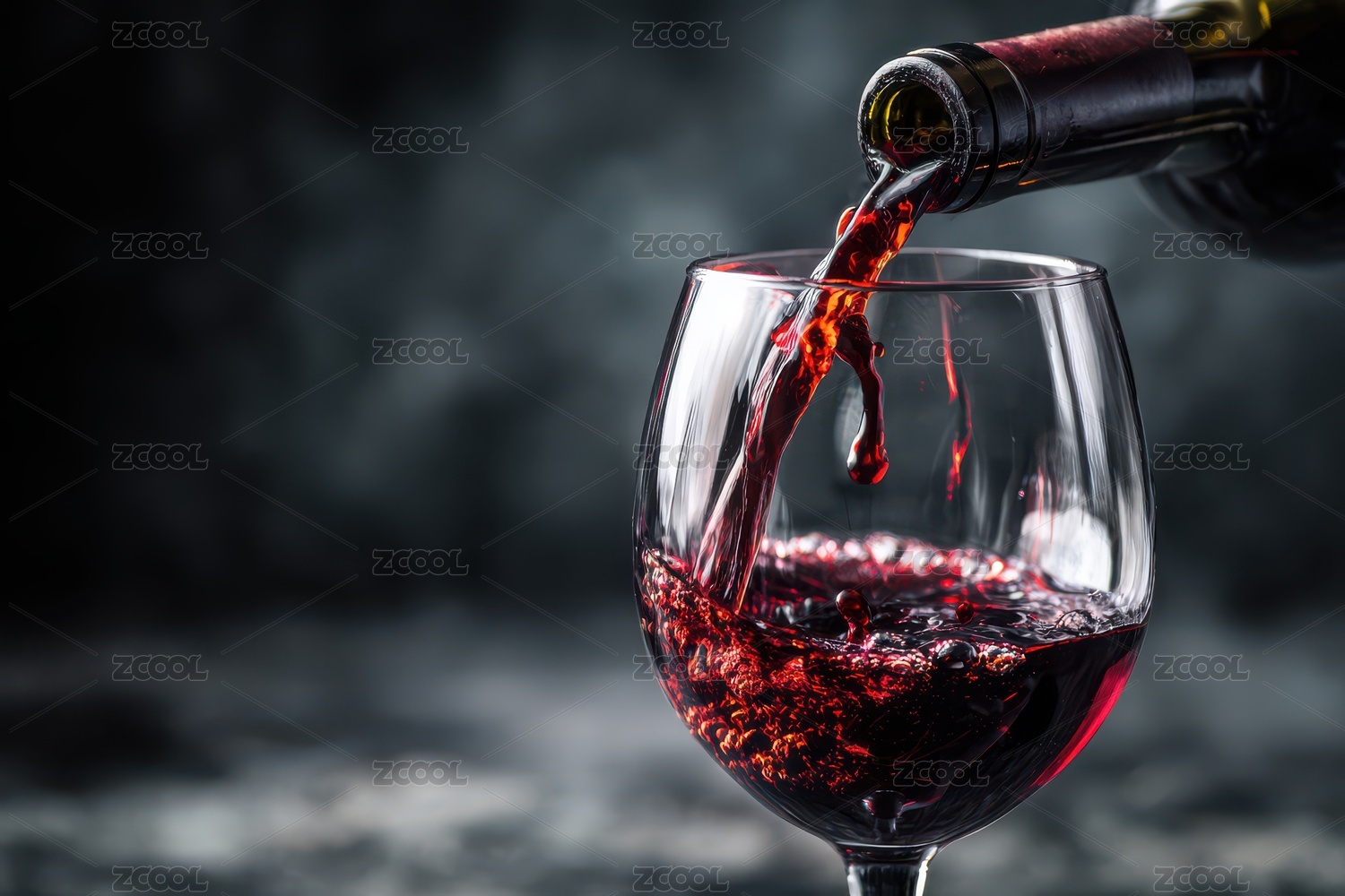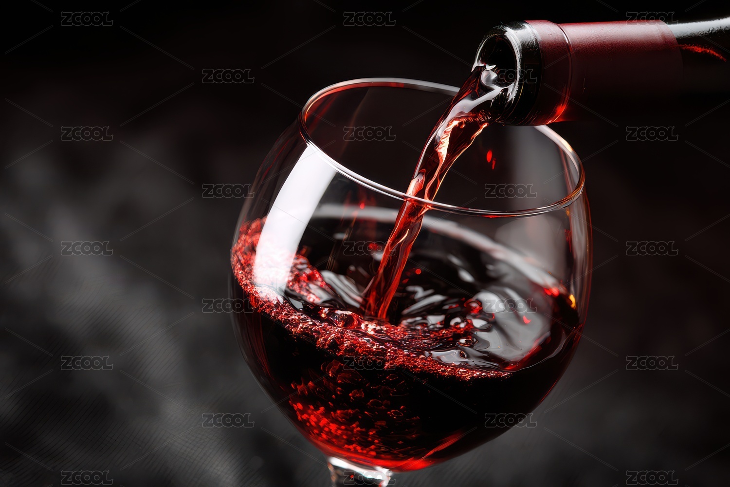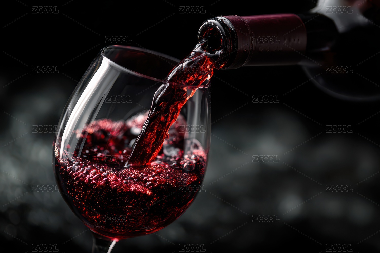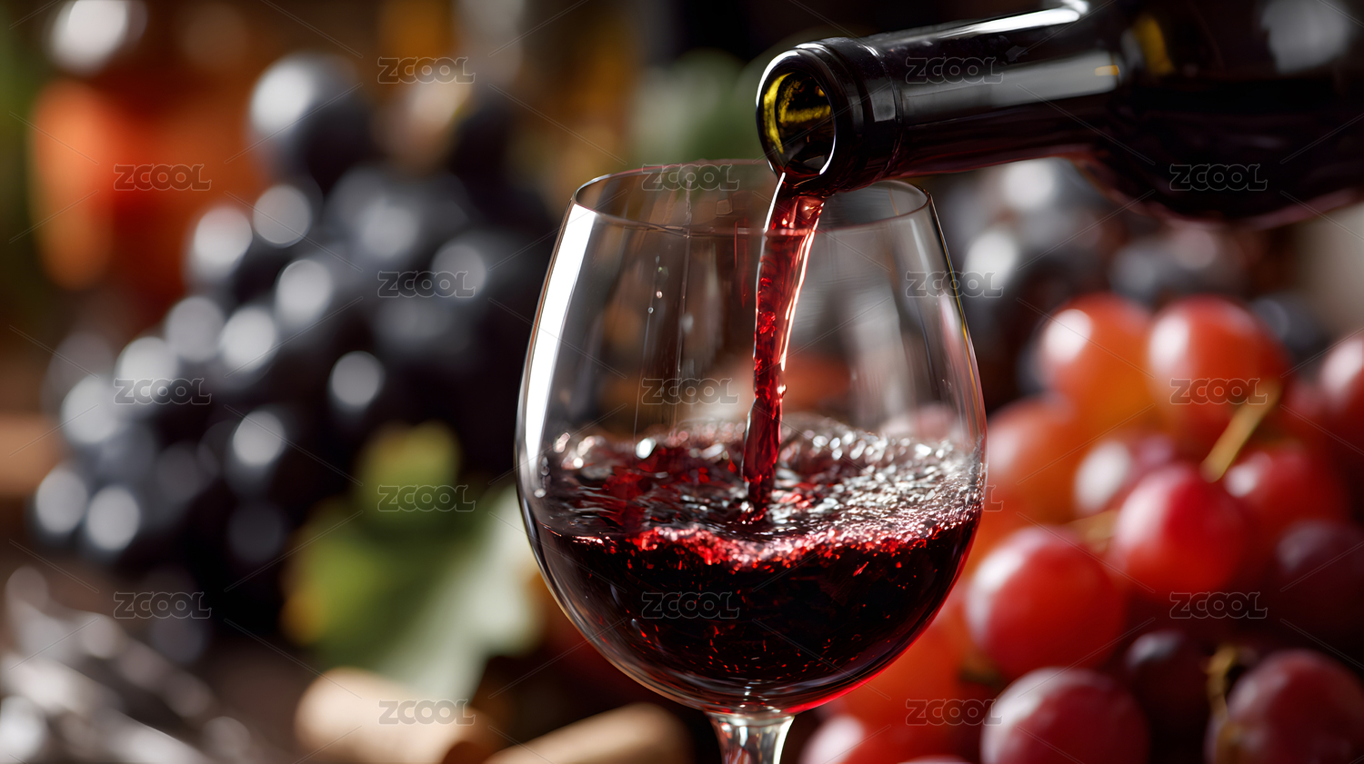 红酒倾注杯中的瞬间特写